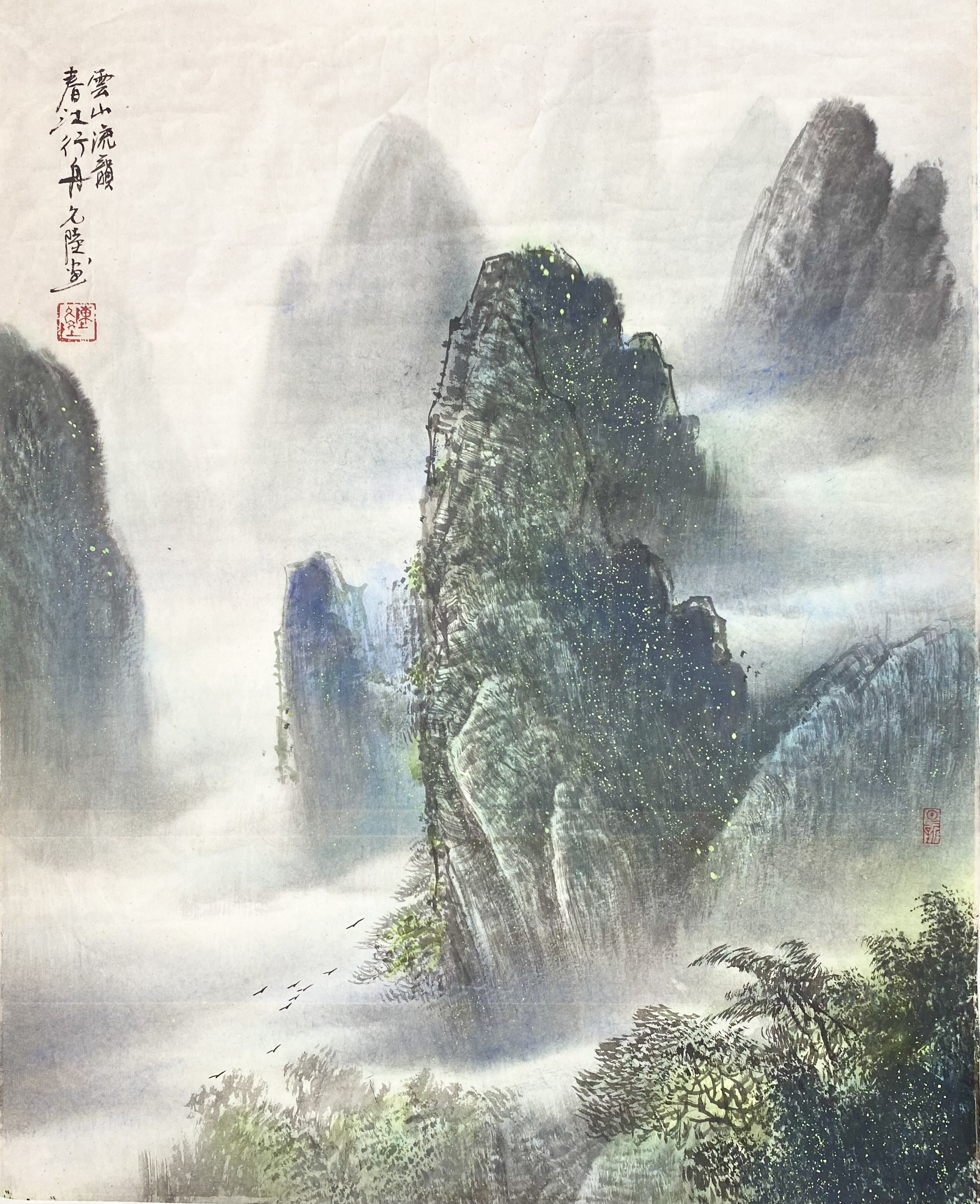 万里长江接远天,千峰竞秀展奇观。淋漓墨色意绵绵。