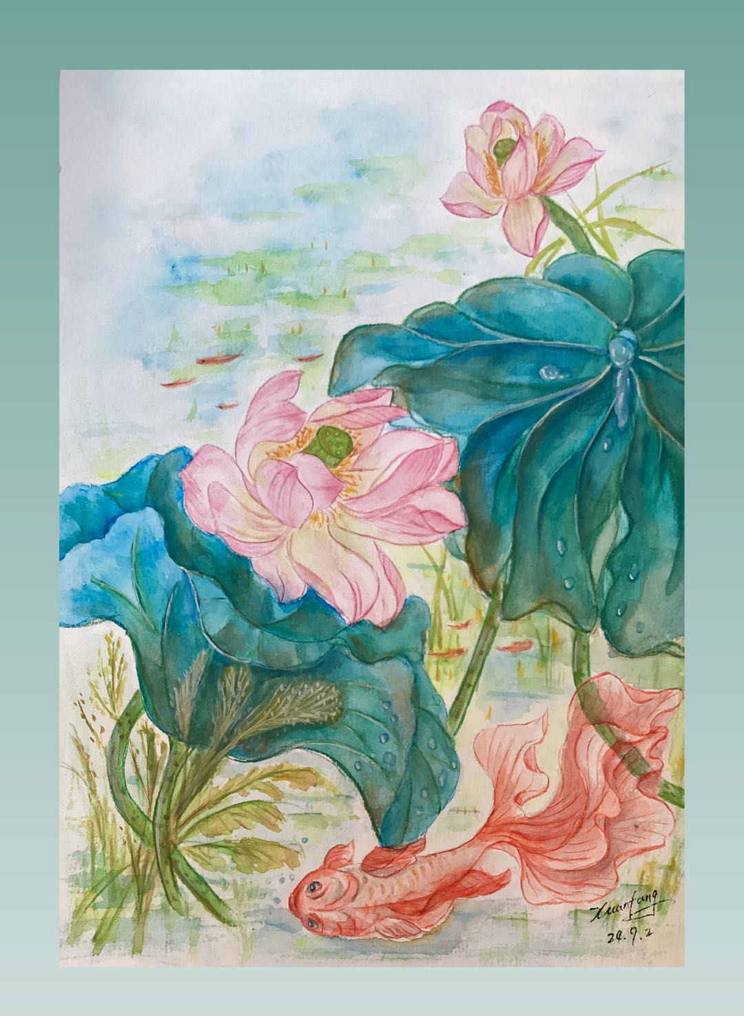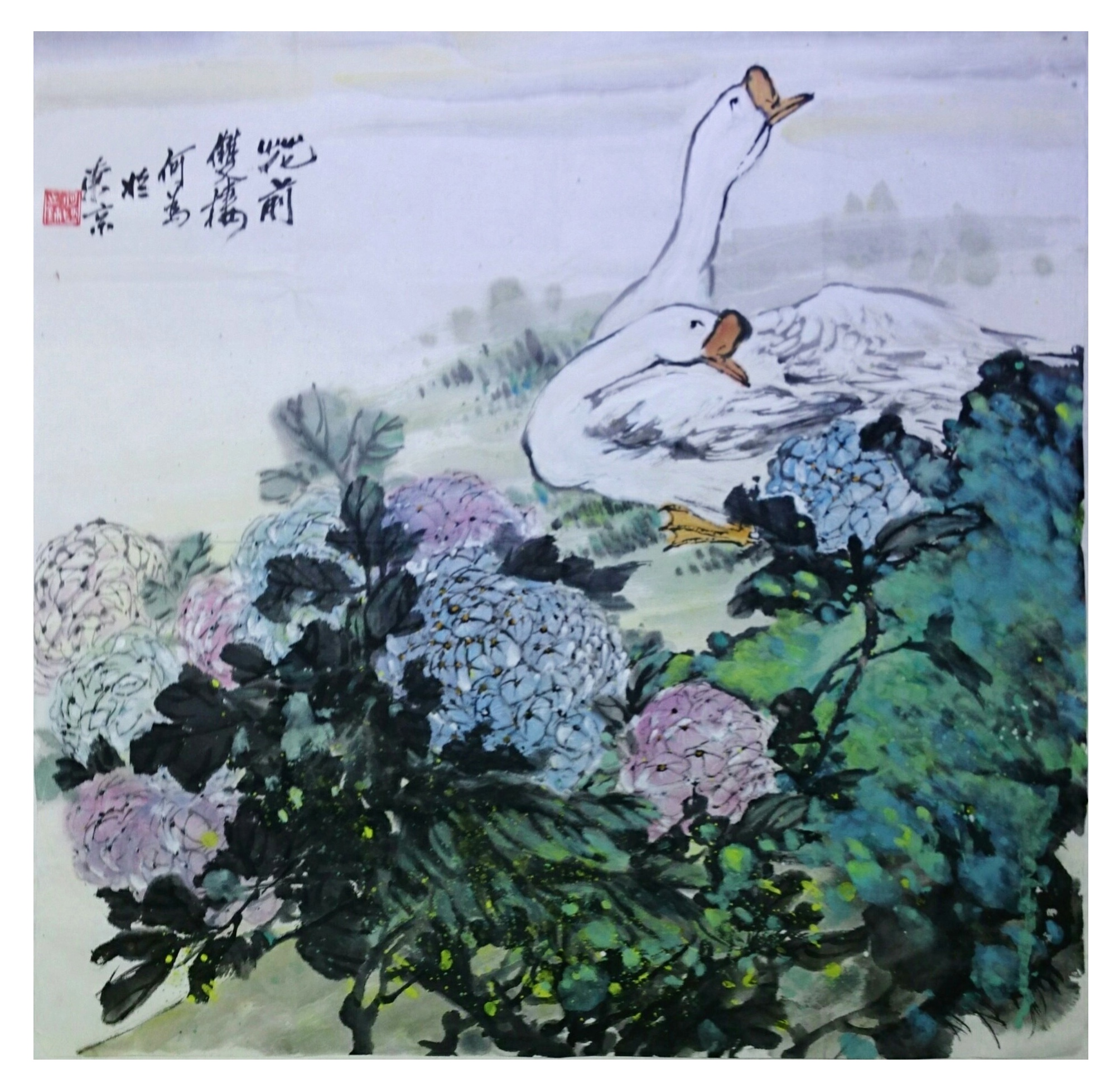 池墨痴情描幾許,紅花綠葉寫華容。