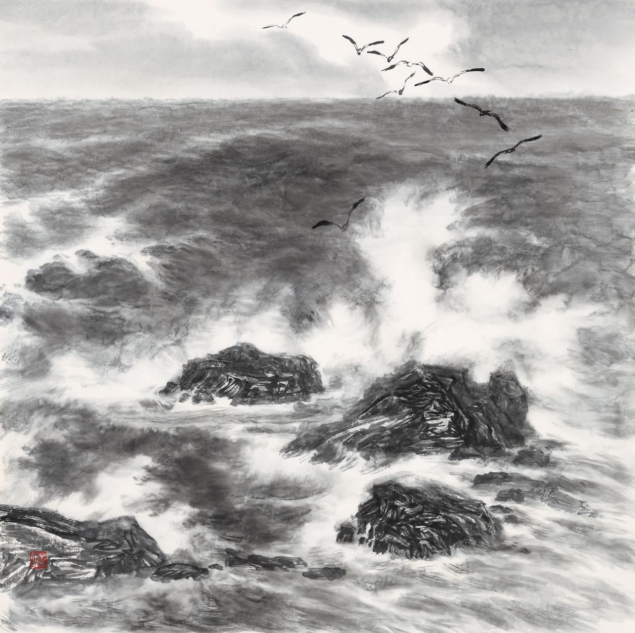 笔底风雷惊四海,画间云水动心弦。超凡妙手震尘寰。