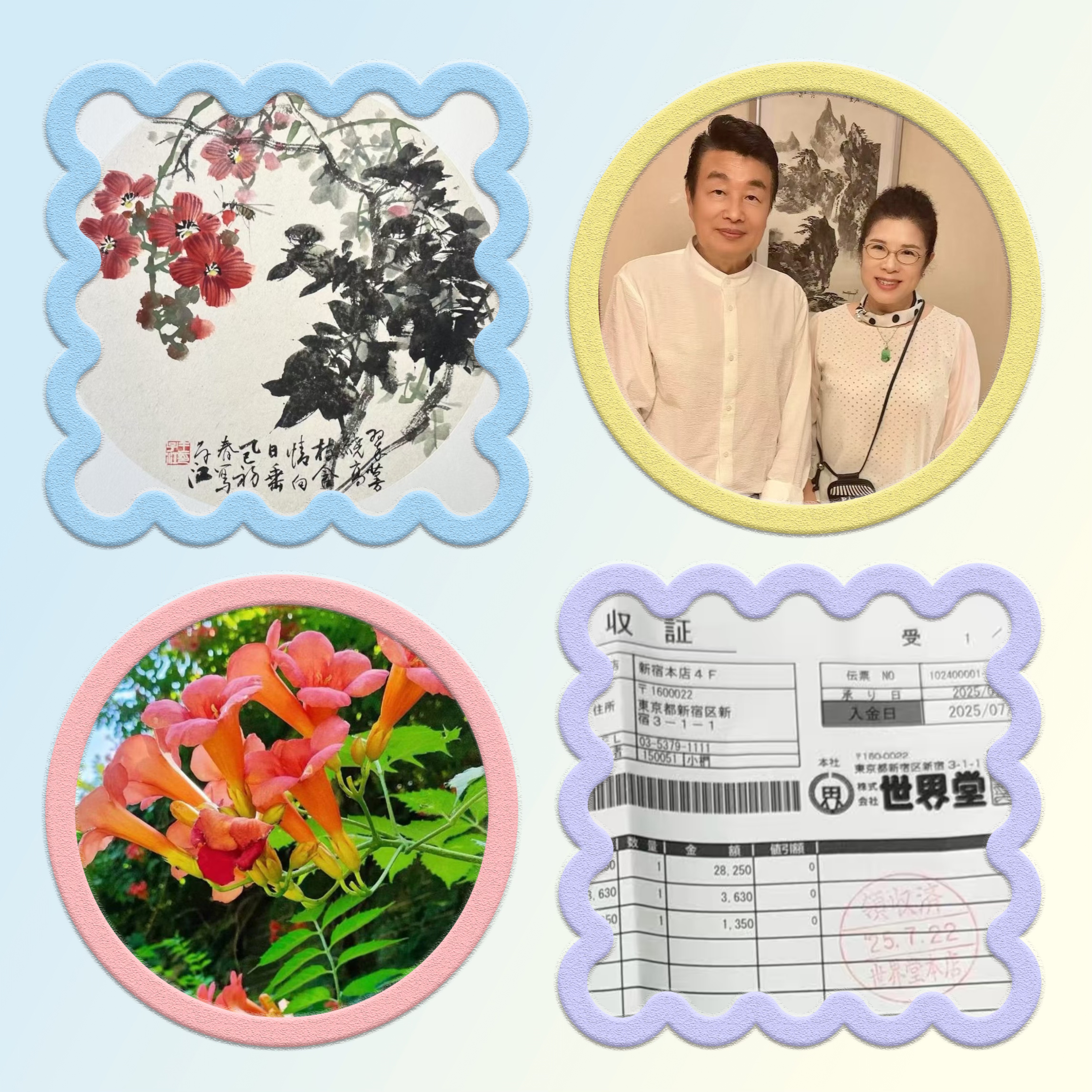 行动力超强的朱惠作家,第二天就去了《世界堂》画材店,挑选了画框等装饰材料,好东西都不便宜,跟买画差不多价格了。她说:“这幅凌霄花是红色,跟自己的朱姓正好吻合,所以拍下来了。做就做到满意,所以也就不吝啬画框价格了。”哈哈哈,取悦自己才是王道!