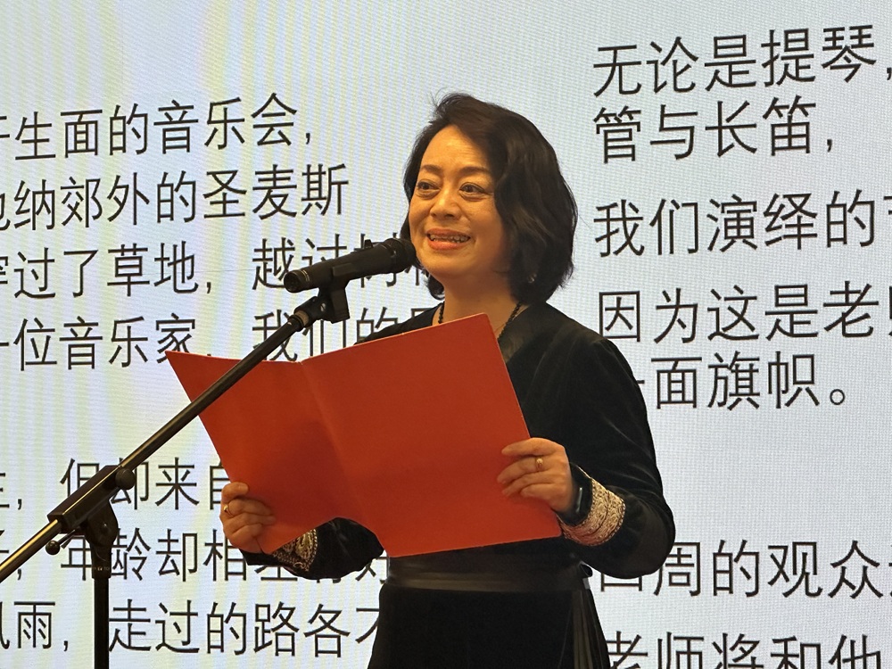 2024年4月我作为嘉宾参加了李永亮举办的“第三部十四行诗诵读鉴赏会”,终于见到了安格,挺拔的高额头下一双清澈灵动的大眼睛忽闪忽闪,散发着独特的灵气。安格朗诵了李永亮的诗作《维也纳郊外的音乐会》,声音甜美,台风大气,语句如行云流水,完美地诠释了原诗的意蕴。在十多位朗诵者中,安格最放松,淡然自若,我看出了她的专业素质。
