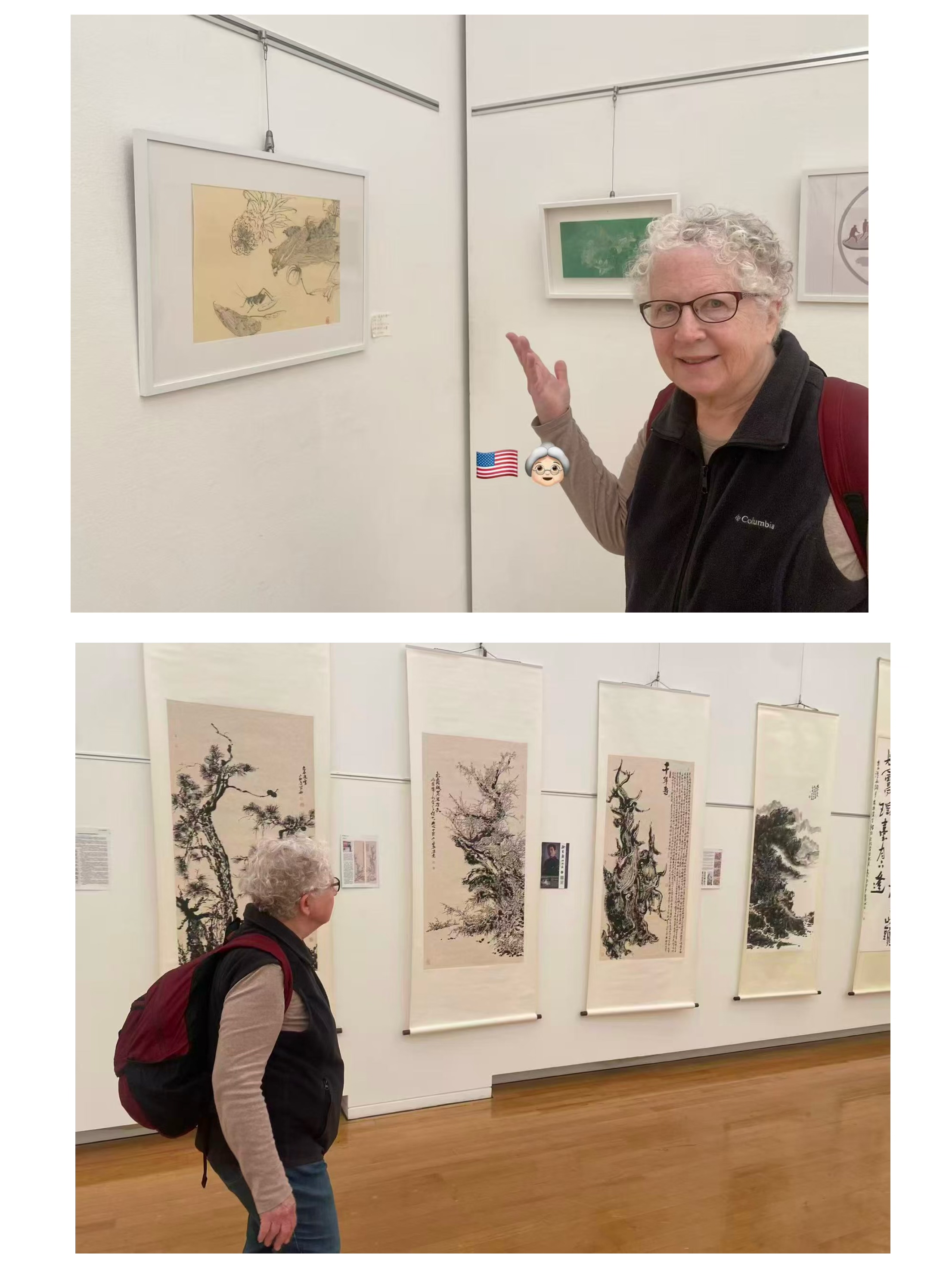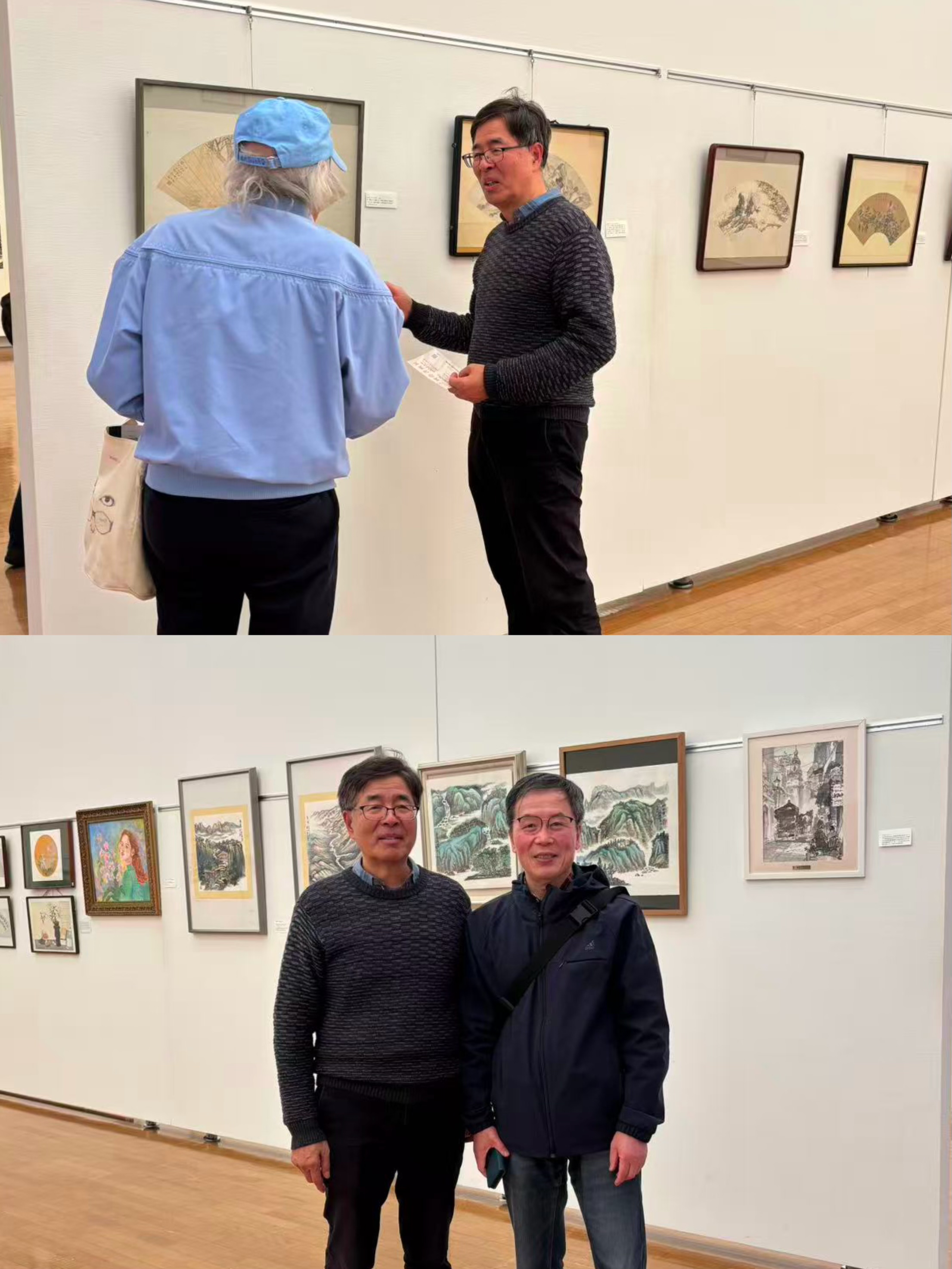 有一位住在府中的中国朋友闻讯也赶来了,他是在府中的报纸上看到这个消息的。这位曾经是it工程师的张先生,在退休以后也迷上了绘画和书法,他看到了熊一然的扇面书法,王少杰,宣方的清供,人物画,还有李胜民的风景油画,他赞不绝口,说以后有机会一定要向大家学习。