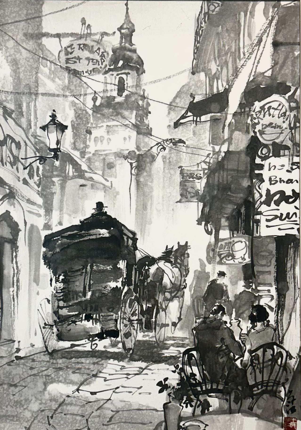 有一位日本女观众站在王子江的画作前,久久不愿离去。她说看过很多水墨画,但水墨画描写的欧洲风情,还是第一次看到,画得太好,太生动了。