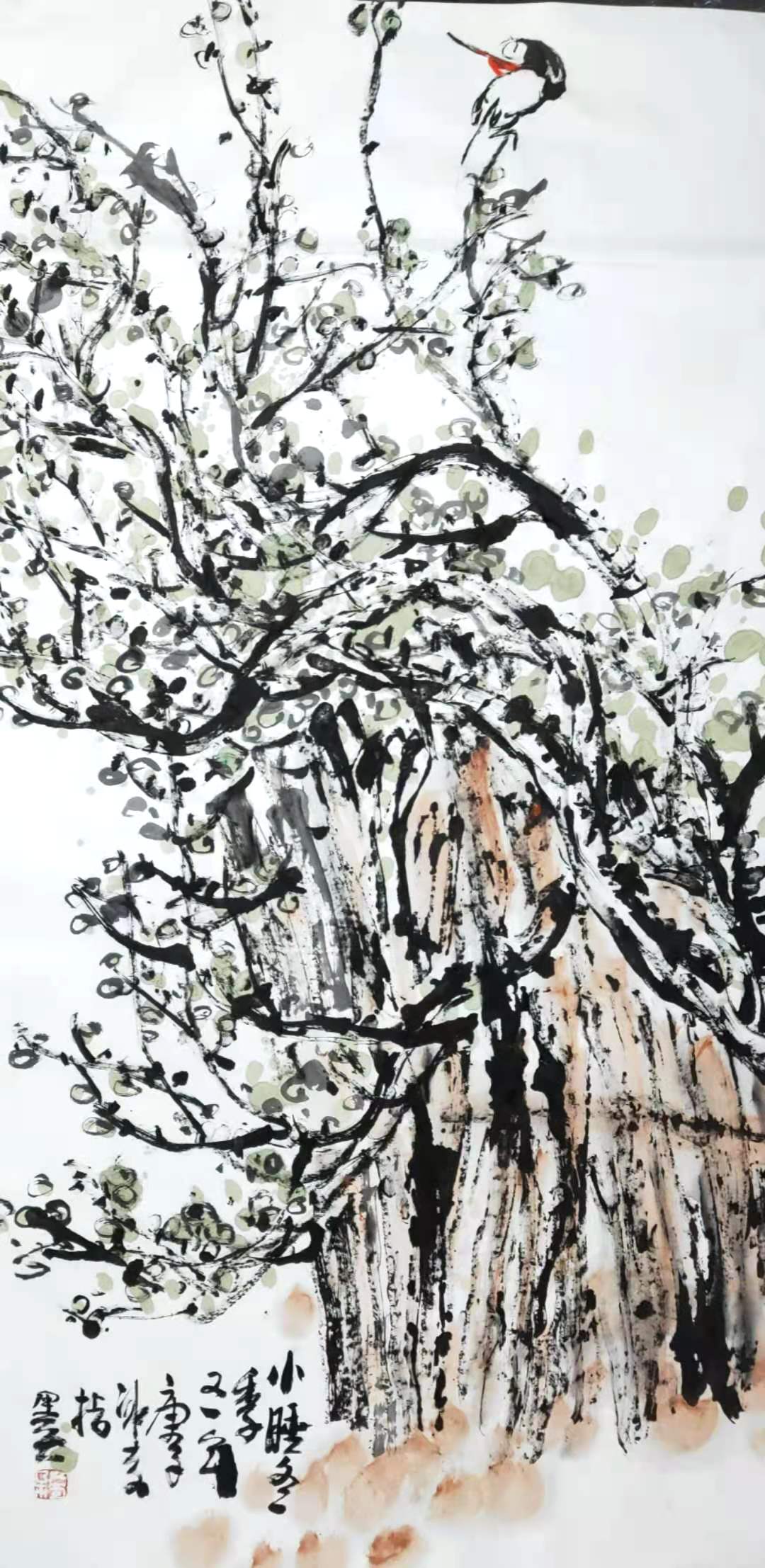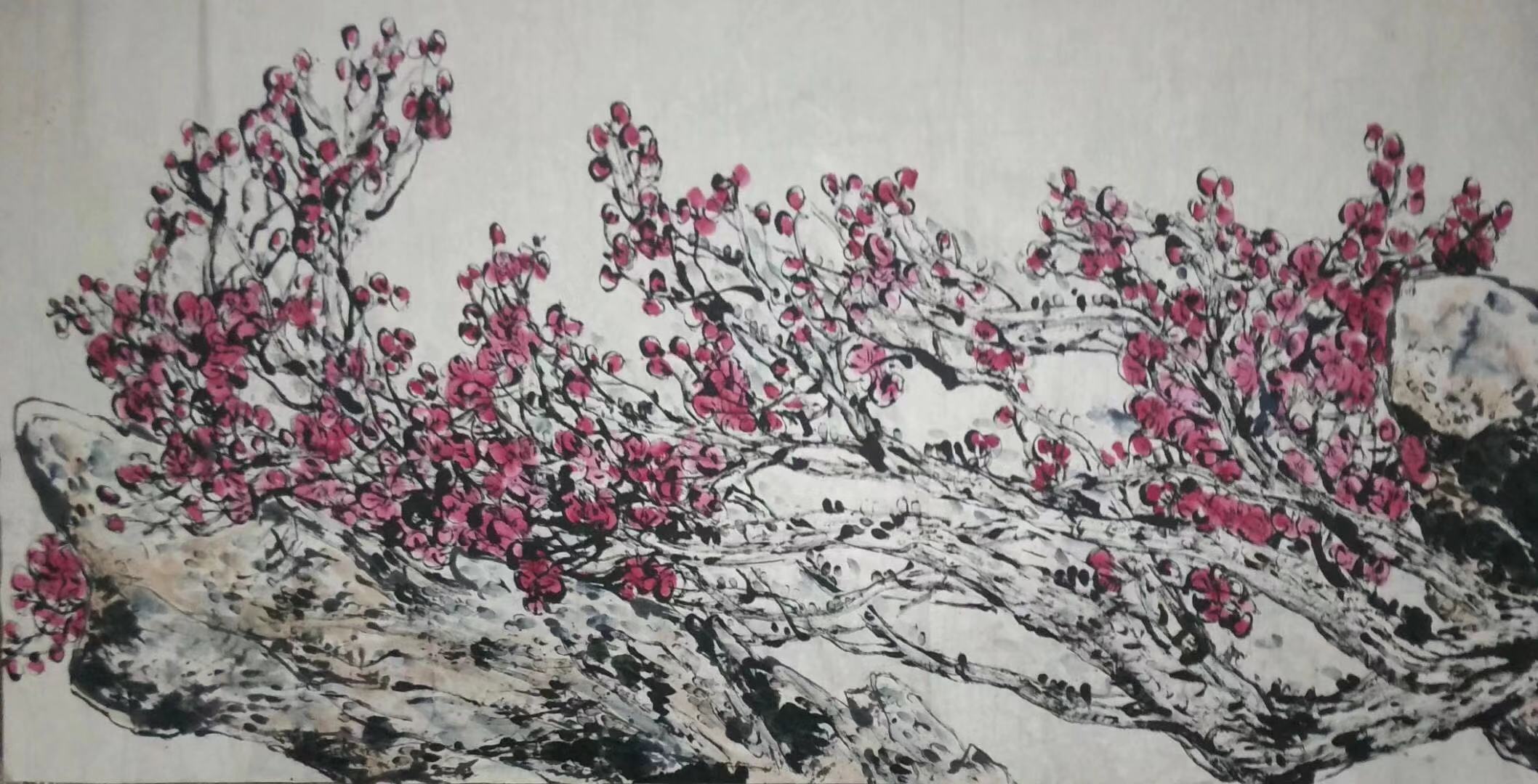 致力达到中西合璧,道法归一的绘画境界。他骨血里深爱中国文化,多情浪漫,幽默风趣,对佛道儒学更是参透其中,圣祖王羲之一生追求的真境界是“知雄守雌,富贵于婴儿”而李老总是给人以孩子般天真的音容,让人觉得可蔼可亲,我个人尤喜他画的梅花,传神而灵动,韵味十足,颇具个性,漫谈了这么多留点空间让大家日后了解他吧。感觉还是喜欢用诗词来小结一下比较符合我的情怀。