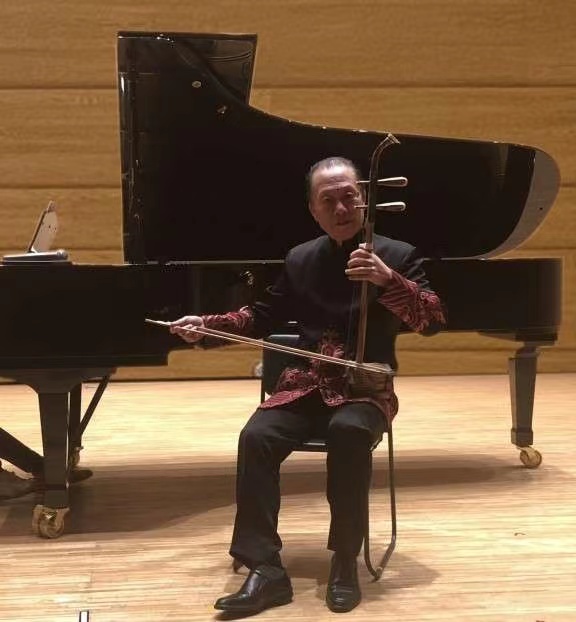 日本二胡振兴会会长二胡演奏家武乐群旅居日本三十三年,在普及二胡事业上几十年如一日,除了在全国各地以及海内外举办音乐会外,在二胡教育上贡献卓著。武乐群著有二十多种二胡教材和十几盘二胡CD及DVD在日本发行,从最南端的冲绳到最北端的北海道都留下他那美妙的二胡声音。2019年他曾与歌唱家崔宗宝自费去岩手县久慈地区为震灾地进行慰问演出,也去曾被海啸冲垮,重新修建的小学为当地的儿童免费演奏。2020年2月他还参加了“支援熊本城复兴新春赈灾义演”(刘福君策划),将门票收入和自己CD销售的款项等共计一百万日币捐赠给了熊本市。这场音乐会武乐群用十年前福岛大地震时海啸冲毁的木材制作的“海啸二胡”演奏了“二泉映月”,那委婉动听的旋律,那如诉如泣的音色,令观众们沉浸在感动之中,一些观众热泪盈眶。