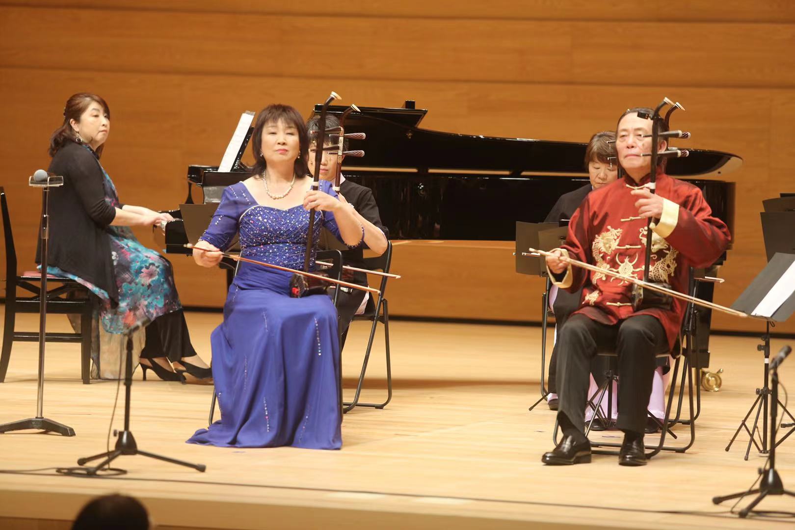 在观众们的热烈掌声下,所有出演的人员加演了日本乐曲“早春赋”和二胡名曲“赛马”为这场在疫情期间带给人们心灵慰藉的中国民族乐器音乐会落下了帷幕,为中日两国欢庆良宵佳节是送上了温馨和快乐。