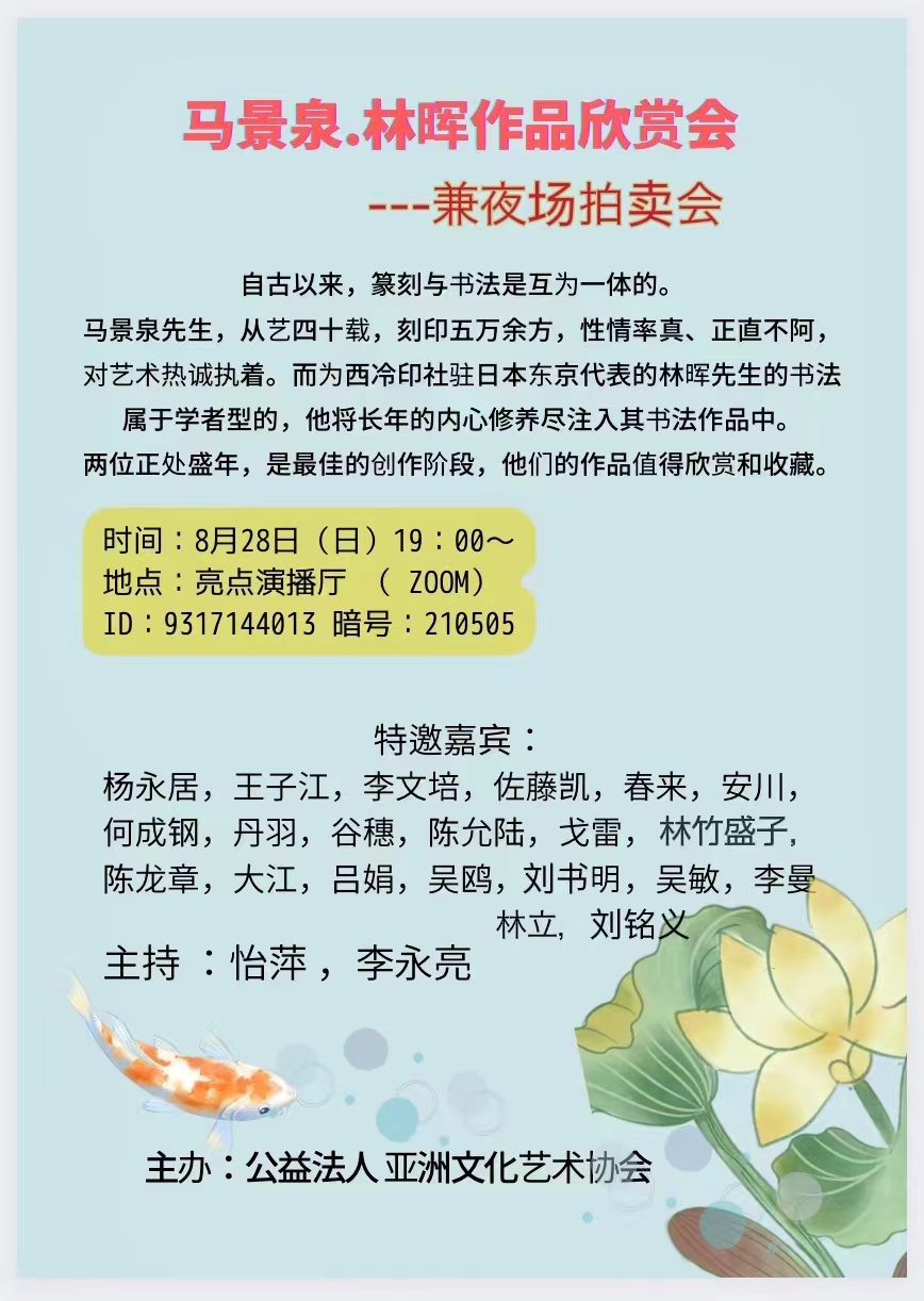 首先,祝贺由公益法人亚洲文化艺术协会主办的【马景泉·林晖作品欣赏会 兼夜场拍卖会】圆满成功!