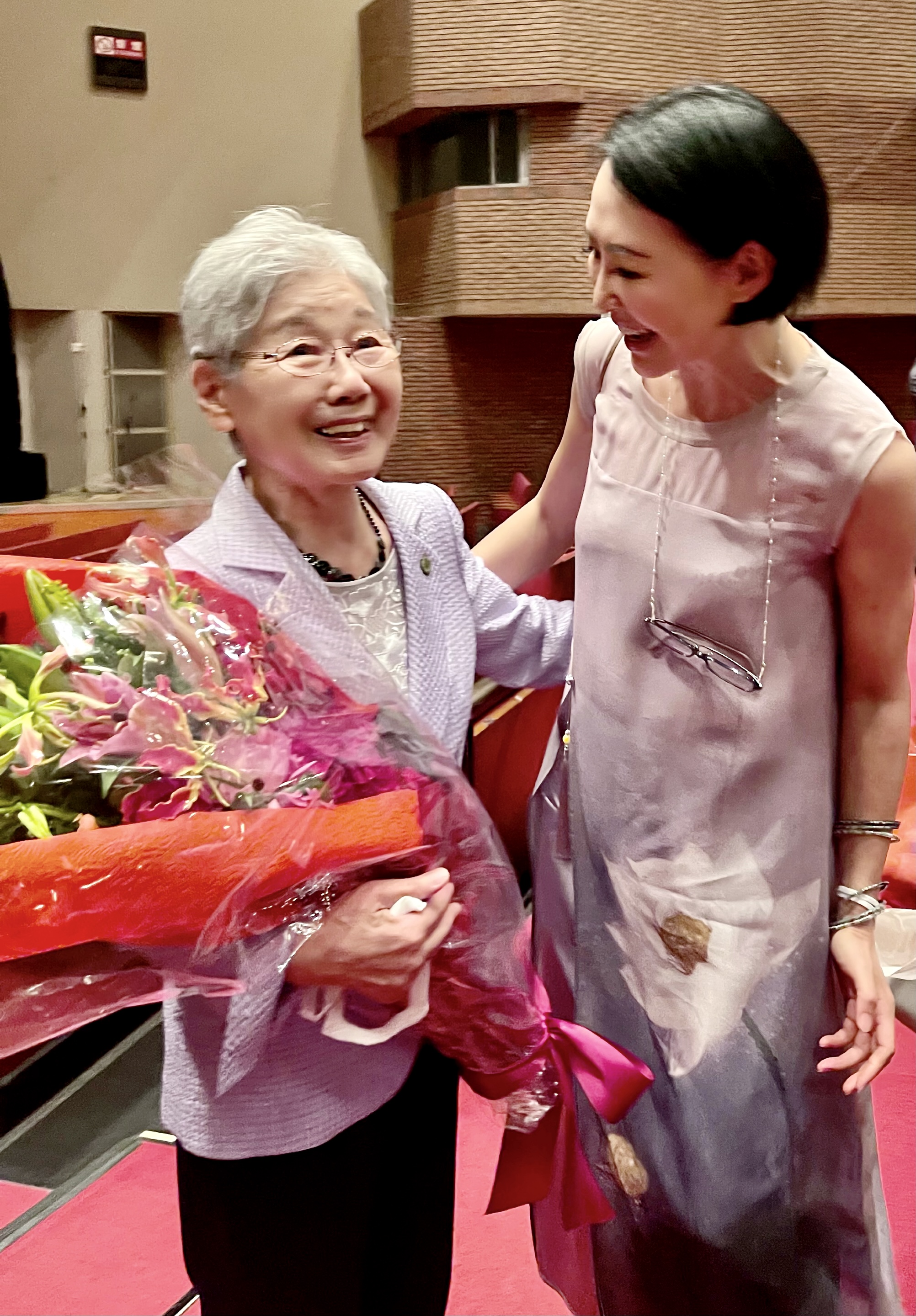 庆典晚会结束后,我有幸的在会场上见到了松崎君代女士,并且和她聊起了线上活动的事,她高兴地回忆着,感谢大家对她的关心和关怀,还让我代替她向李永亮老师问候。