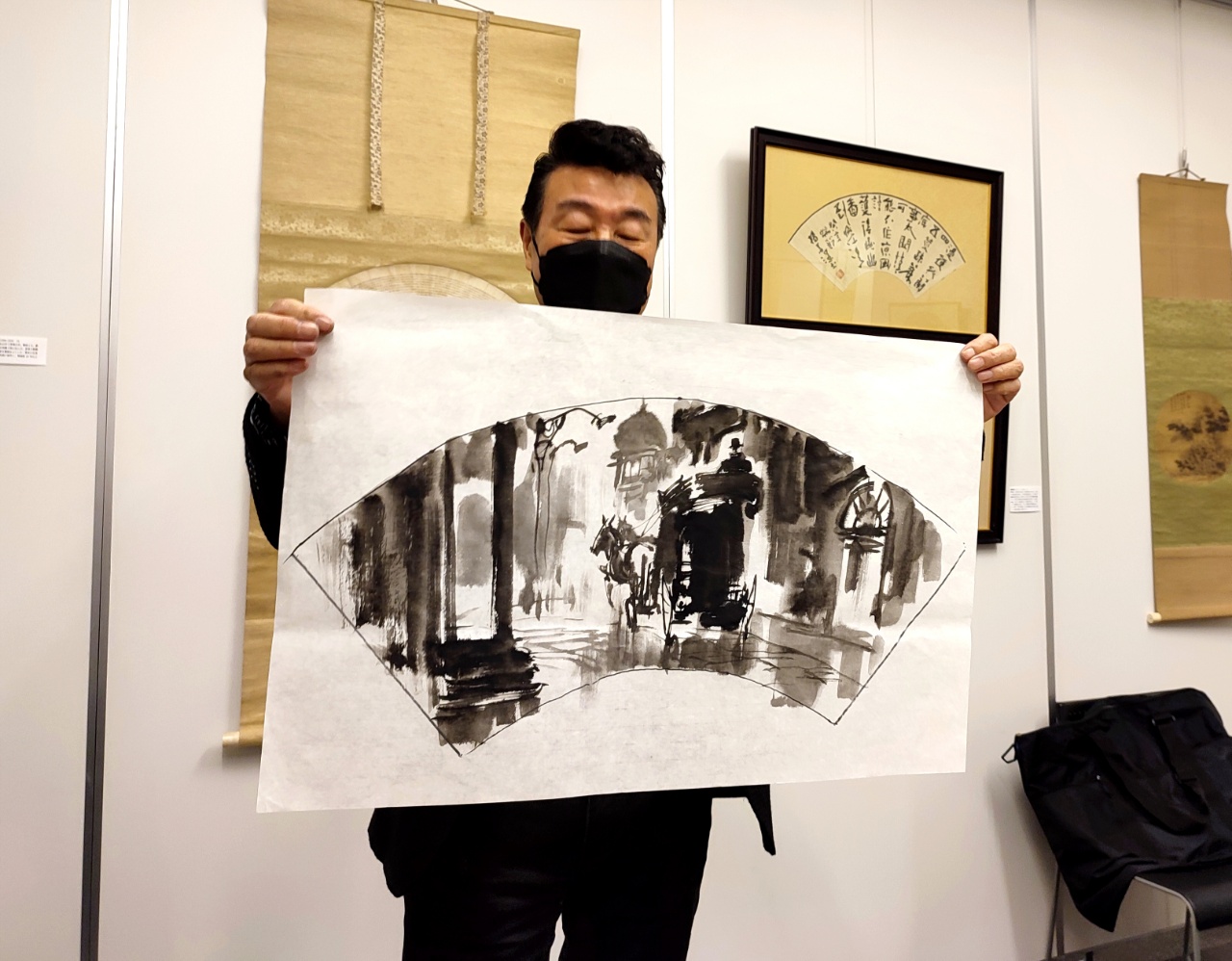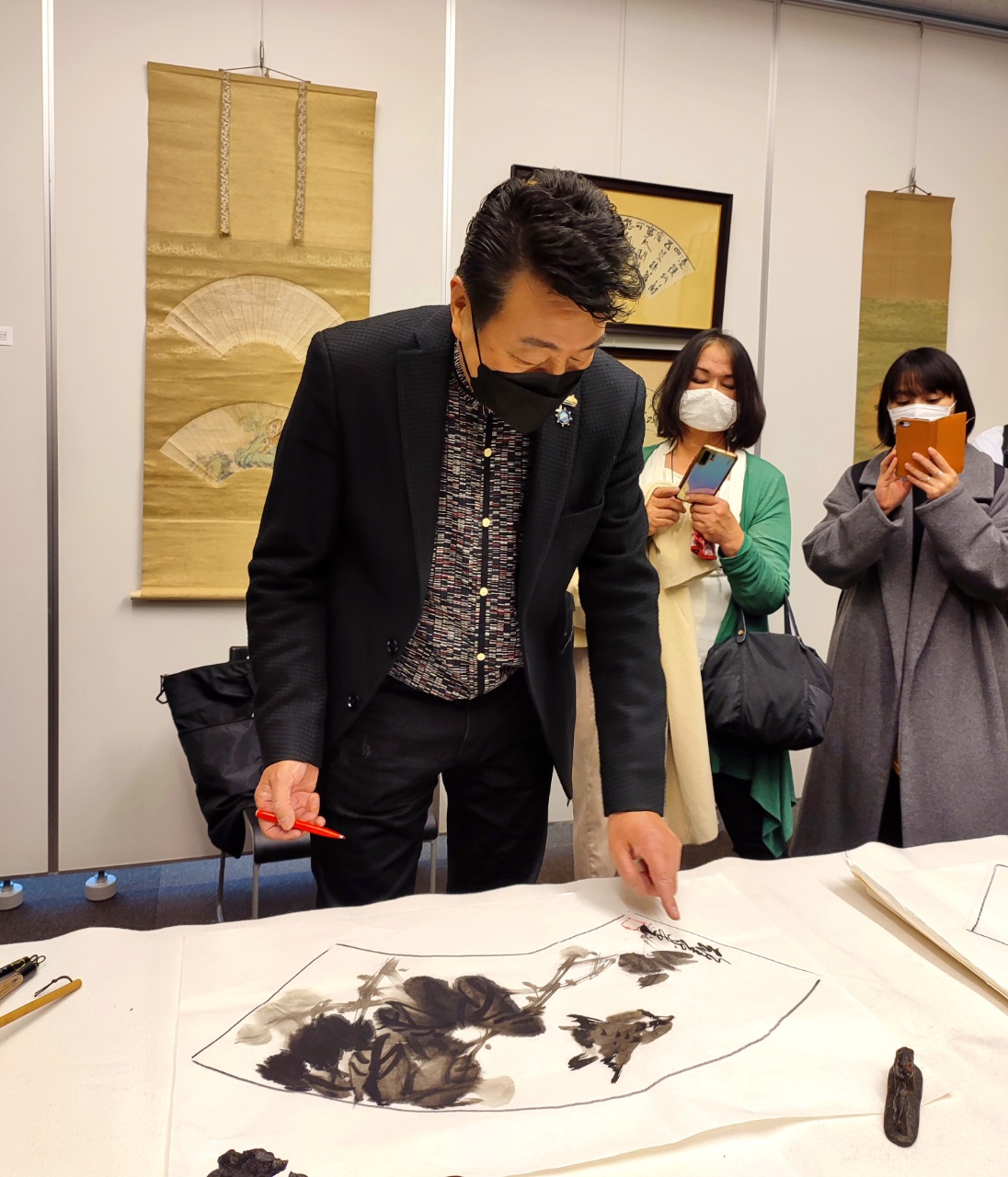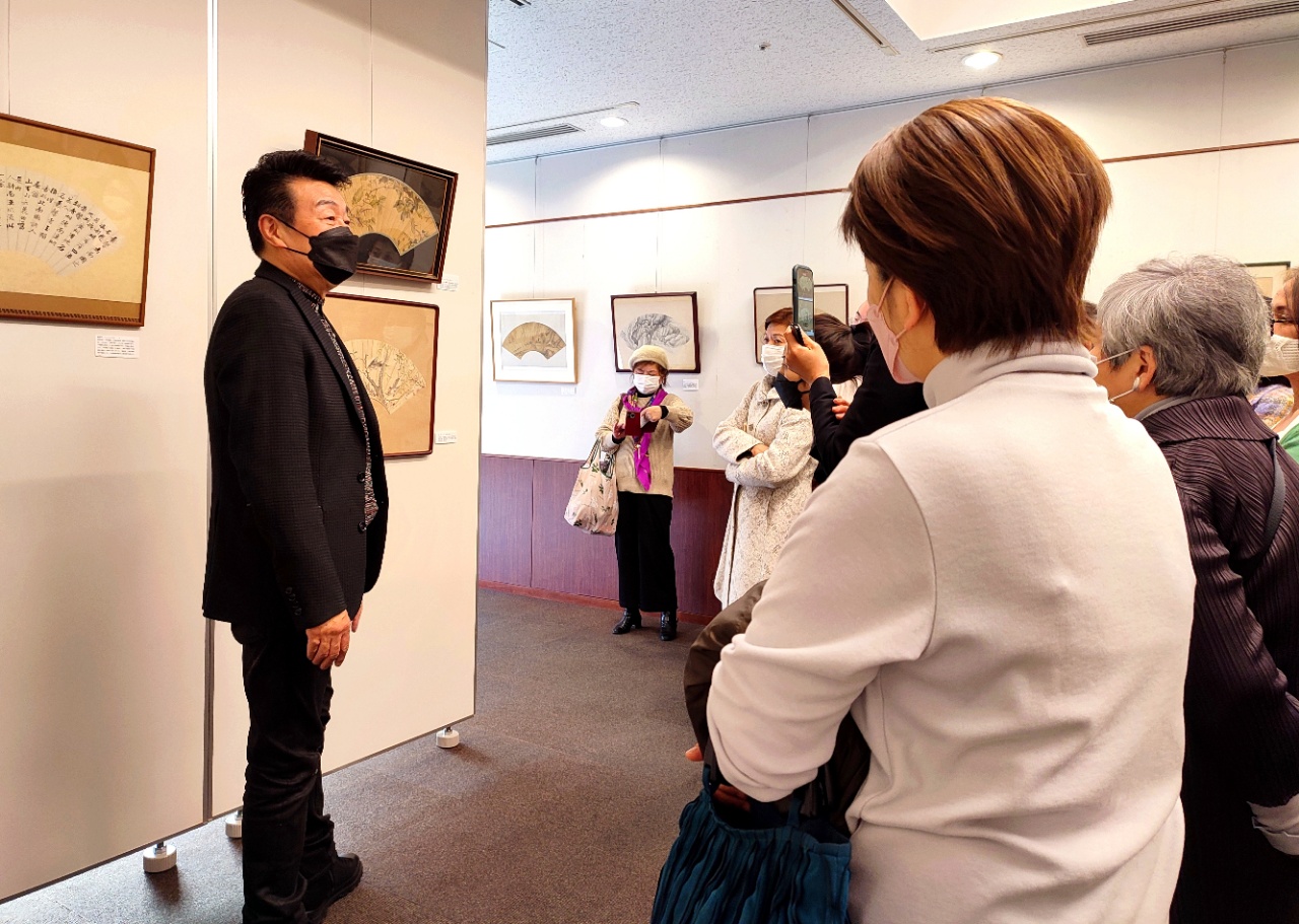 1月20日,有幸参加了法人亚洲艺术文化协会在东京涩谷区文化综合中心举办的《扇面书画的世界》展览会。更有幸参加了著名书画家王子江老师的现场讲座和扇面画实演。