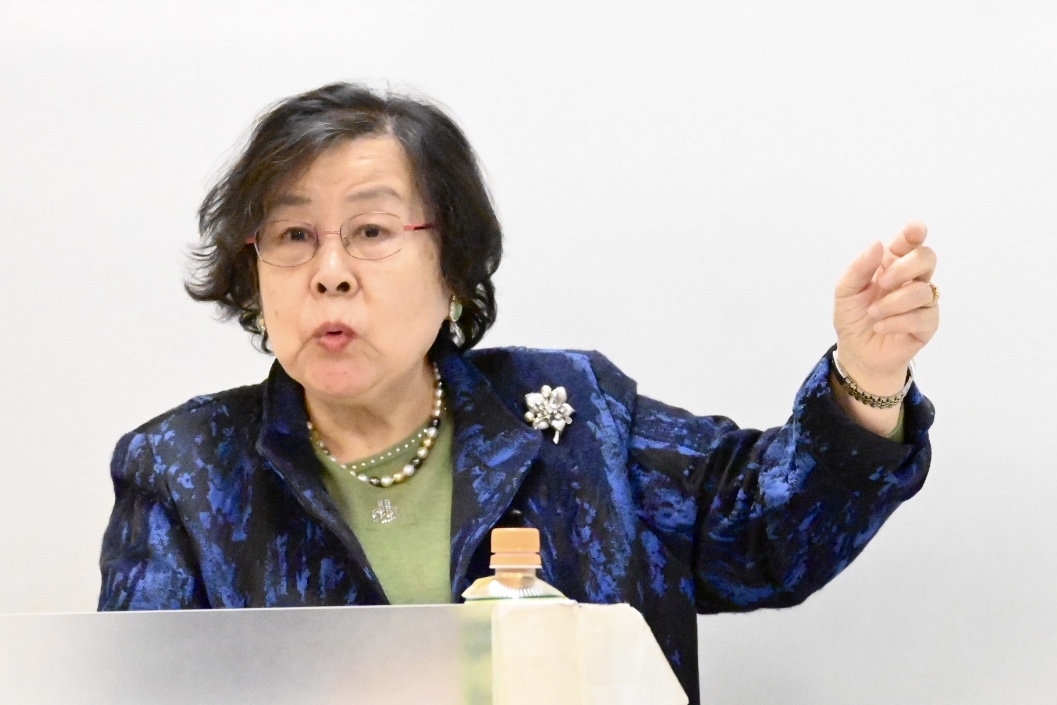 李老刚劲有力的笔锋和轻如鹅毛的飞笔,使画的主体鲜明,浓淡远近以及留白,给人以想象的空间,枝头的花枝俏,魅力十足。疏密有致,层罗密网,力透纸背,画龙点睛的色彩搭配和运笔,真是看得眼花缭乱。李老知识渊博,侃侃而谈,真恨不得能把每一个字,每一句话都镌刻在大脑里,吸收到身体中。为方便日本观众的理解,怡萍为李老做日语翻译。