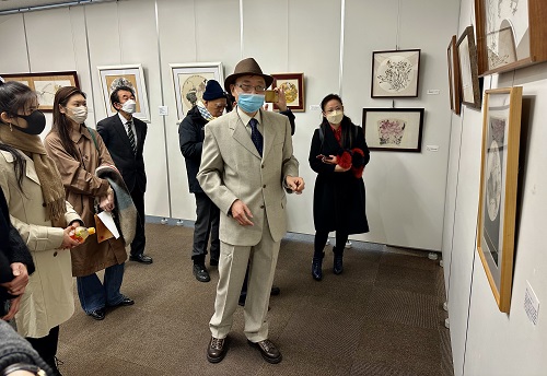 这一天还有一个让在场所有人惊喜的是,此次展会发起人之一著名画家杨永居老师居然冒着凛冽的寒风不约而至,从群马县也来到会场,并且热情地与大家交谈讲画,在场的每一位都非常受到鼓舞,会场里洋溢起一片久别重逢的喜悦,杨老师在展会进入尾声中给我们又带来了一束温暖的光亮。