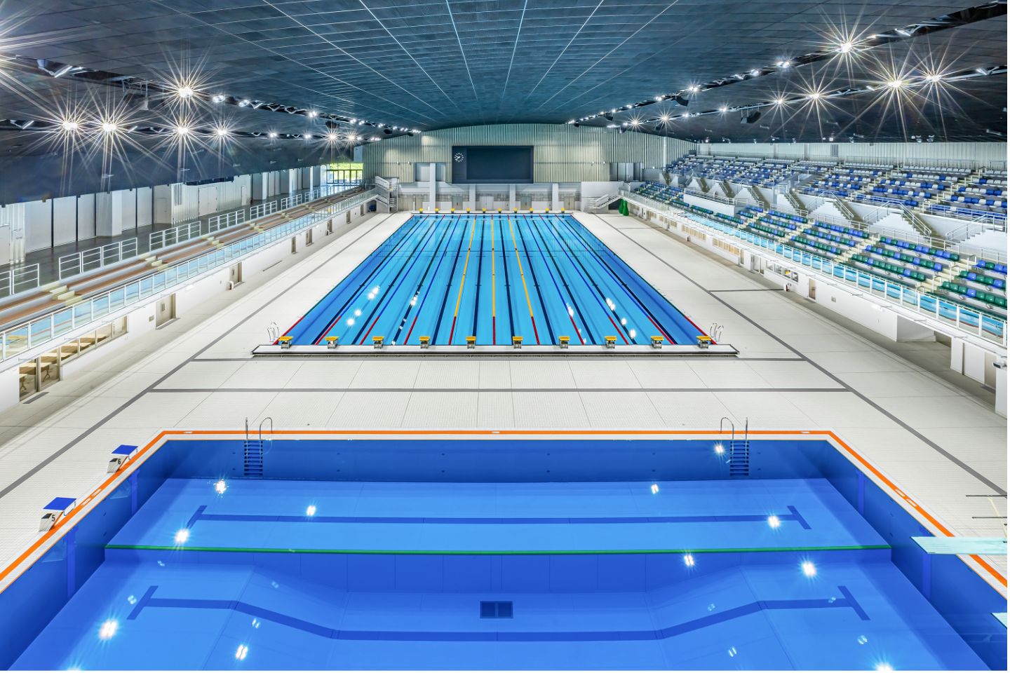 不过呢,没有赛事时,每天都对市民开放。泳池下面加装移动地板,控制在120公分深度,使大家都能安心游。而训练时间,会特别划出几条泳道给专业选手,那画面看着都觉得“哇,好专业”,不禁多看几眼。