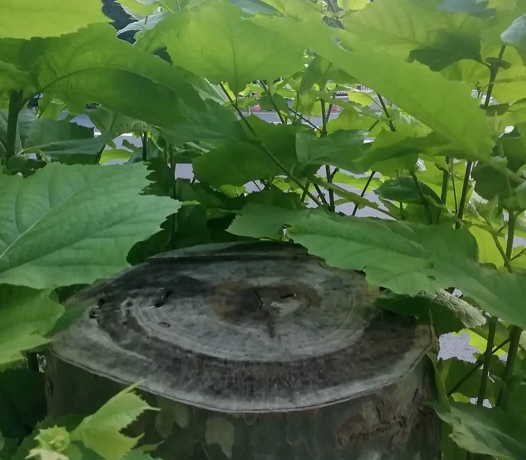 当今年的春天到来的时候,我果然发现其中的三棵在截断的树干上,真的是又慢慢地生出了细嫩的绿叶来。看来它们的生命力极强,正是它的刚毅和顽强,才让人寄托了理想和不屈不挠的信念。