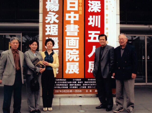 高崎书道会是地方上最庞大的书道团体,金泽子卿的弟子及弟子们的弟子都是该会会员。金泽先生的入室弟子在社会上颇有影响,在各行各业担任重要职务,天田先生曽任群马県书道协会会长。每次我出席书道会的庆典聚会,天田先生都介绍我是他的老师,让我坐上座,他对我的尊重也引起各方面人士重视。天田先生还介绍许多书法老师进入我的工作室学习,将日中书画院带入鼎盛时期。在已出版的两册日中书画院画集的活动篇章中,留下了许多书法团体交往的身影。在我举办的中日文化艺术交流活动中,集结了很多支持者,将一个个活动计划推行实施成功。