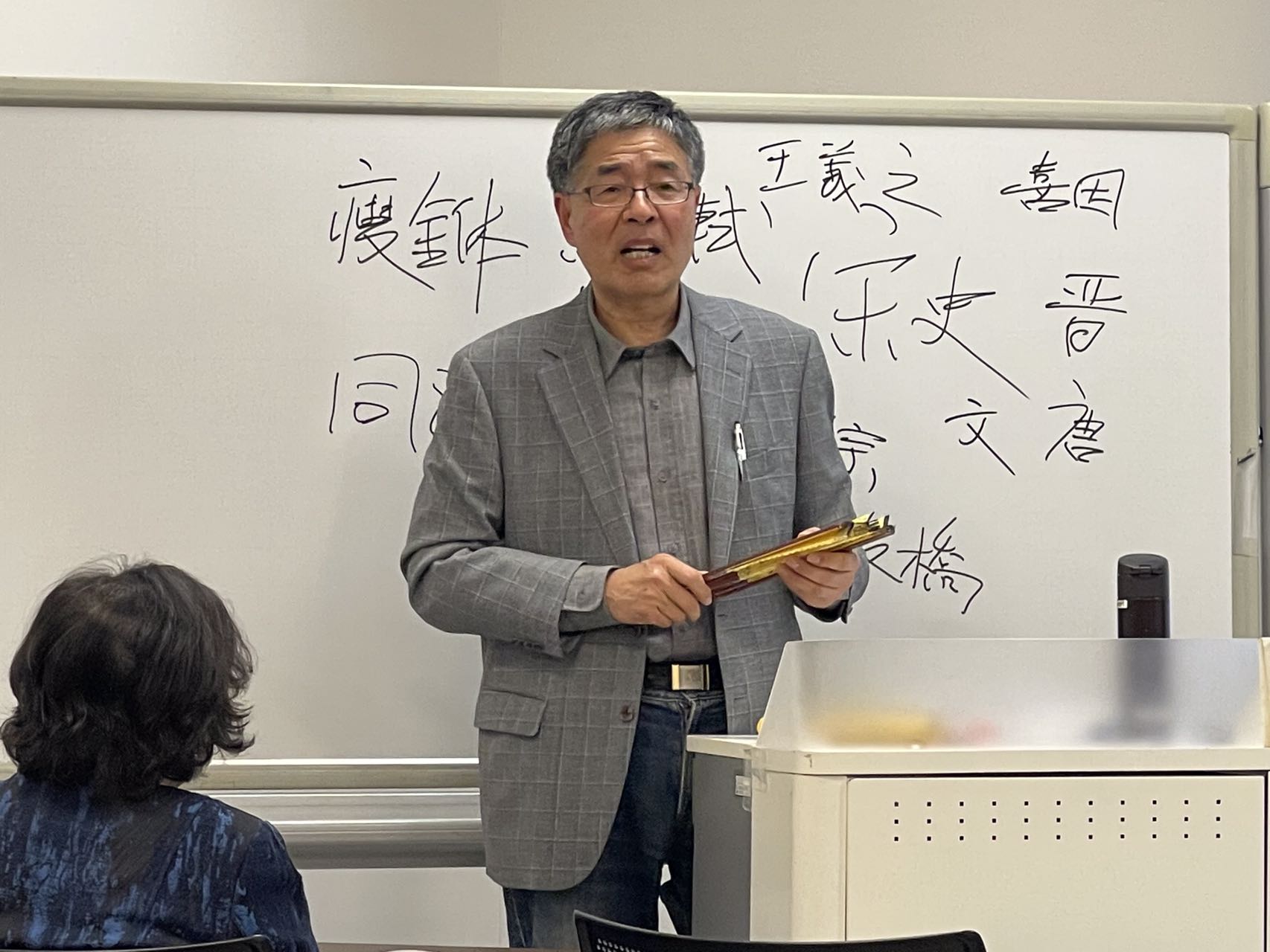 烦恼之二,是我的讲演:扇面书画里的历史。说实在因为忙碌,我没有很好的准备。想起一位先人的教诲,没有准备好的讲演可以从故事开始。于是我从后汉的曹操讲到晋代的王羲之,又从宋微宗谈及清代的郑板桥,其间也穿插了日本僧侣喜因带着桧扇访问宋代古都开封的史实。在这些人和事的背后,多少也清晰地隐现了扇面画在各个时代的背景。