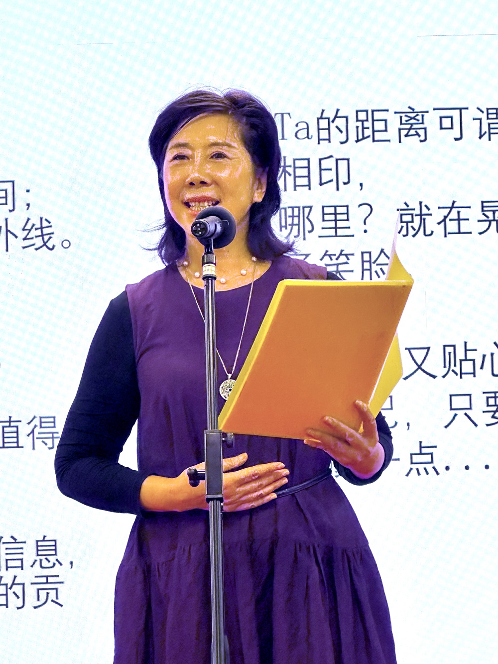 东京中国文化中心宽敞大气的舞台和高端的多功能大型屏幕也为本次的朗诵会增了色,添了彩。本次活动的成功举办离不开旅日华侨华人的精诚团结。到场并致辞的嘉宾有,NPO法人日本汉语教师协会吴川理事长、中国音乐学院客座教授、NPO法人日本二胡振兴会武乐群名誉会长、全日本华人书法家协会高娃副事务局长、皮影表演艺术家包锋女士、青岛啤酒日本总代理兼画家山川王芳女士、西泠印社创始人丁仁孙女丁如霞女士、全日本华人促进中国和平统一协议会副会长,日中商报特约记者霞光女士、世界华人总会,日本分会执行会长林松盛子女士,和日籍华人联合会代表小针丹女士,亚细亚大学国际交流科的李兵女士。