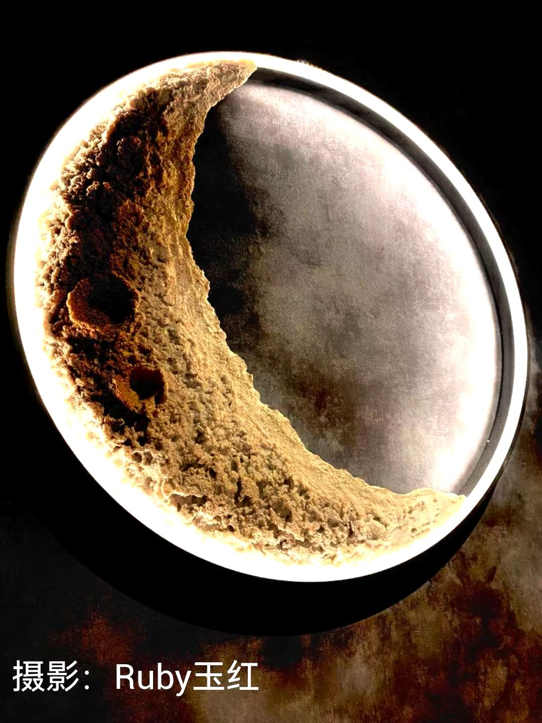 推开《嫦娥》的玻璃大门,首先映入眼帘的是临窗的雅座。再往里走是一处较为宽敞的用餐空间。墙上一轮硕大的月轮形状的氛围灯赫然入目。加上店内错落的月形灯盏,在光影流转间勾勒出"皎皎空中孤月轮"的诗意。店主是一位美丽的女性,和我们分享了她创立这家精進料理店的初衷,包括店名《嫦娥》的由来等等。