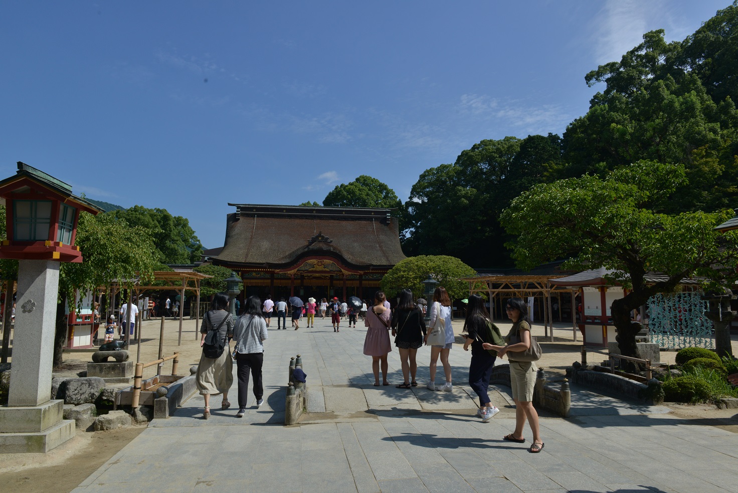 下船后,我们三个一群,五个一伙,尾随导游去了太宰府,天满宫。太宰府曾是九州的首府,历时五百多年。天满宫和背后的宝满山、三郡山同属太宰府自然公园,是日本学问之神菅原道真的本宫,已被定为日本国家级文化遗产。这里悠久的文化动人的传说和美丽的异国风光,委实吸引了来自中国的不少游客。他们拿出“长枪短炮”,把自己定格在永恒的画面中,留下了回国后向亲朋好友炫耀的资本。
