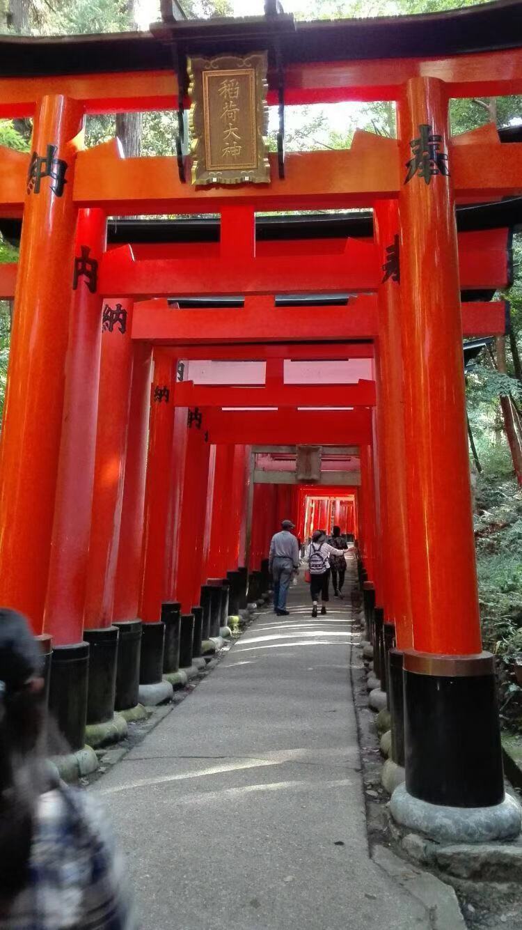 伏见稻荷的位置偏隅一角,与别的景点隔开,也许同它是供奉农神而不是佛或神道有关。它的标志是一片红。