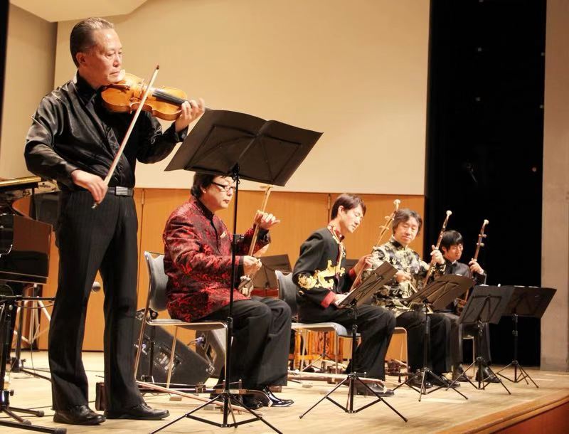2014年5月24日,武乐群在东京举办的“琴缘弦和~东・西・南・北二胡音乐会”上不仅独奏了“阳关三叠”、“豫北叙事曲”等二胡名曲之外还用“海啸小提琴”演奏了他自己改编的小提琴、二胡五重奏“荒城之月”。中泽先生亲自登台向观众们介绍了“海啸小提琴”诞生的经过和对武乐群先生的诚挚感谢!