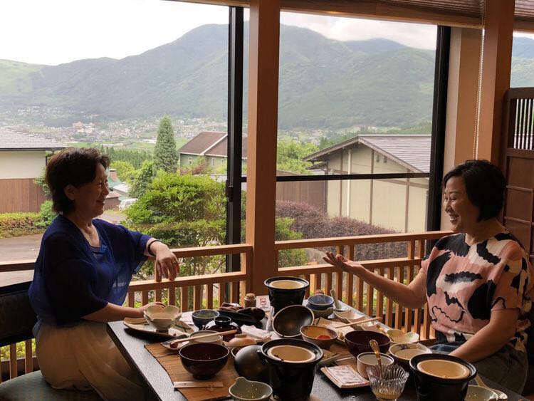 2018年初夏,我们上海女教授一行四人,从上海飞往日本佐贺。在司机小周的带领下,到当地一家外观安静、朴素的餐馆品尝当地美食。真没想到我们自己在铁板上烤出来的和牛肉入口即化,远胜于上海米其林大厨烹饪出来的牛排。午餐后我们驱车前往福冈,在郁郁葱葱的竹林半坡,我们到了萍之家,一座典型的日本民居。