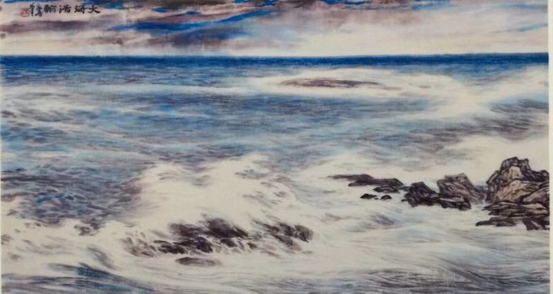 海潮如龙 90x180cm (获日本总理大臣奖)
