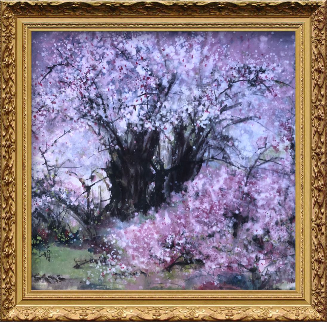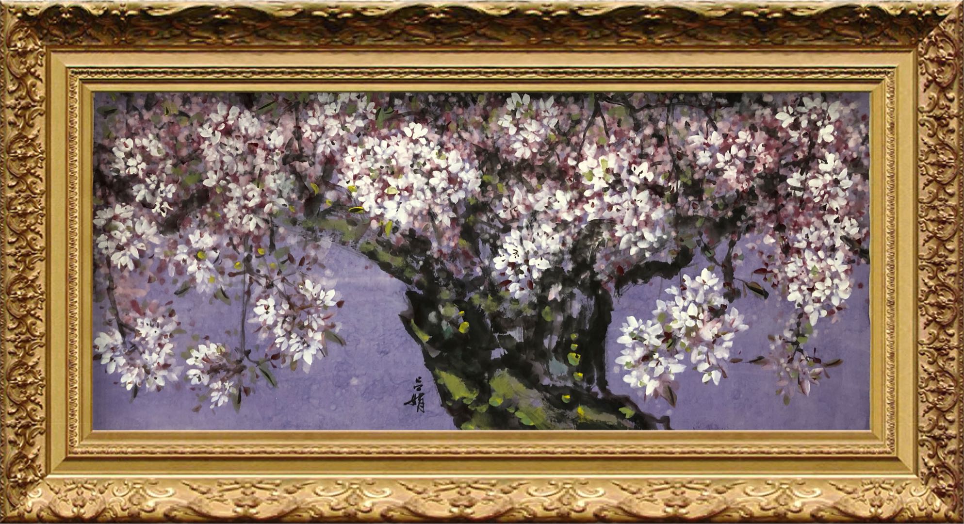 我注意到吕娟花鸟画创作中的情感激流,那种滔滔不绝的色彩。只要看吕娟的画,你就有一种置身樱花烂漫的情景之中任由色彩和笔触形成的视觉漩涡冲击和洗礼,内心一尘不染。人们在谈论梵高的绘画时,始终忘记技法的炫耀,总是用火焰般的笔触来形容梵高笔下的世界。