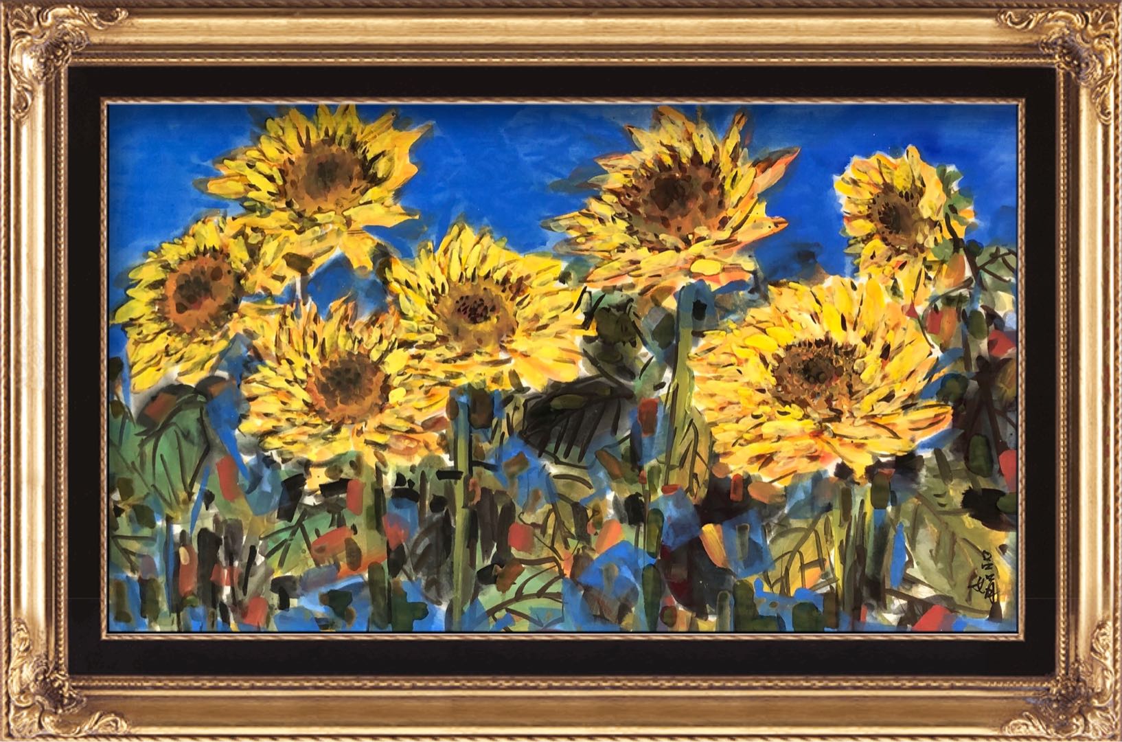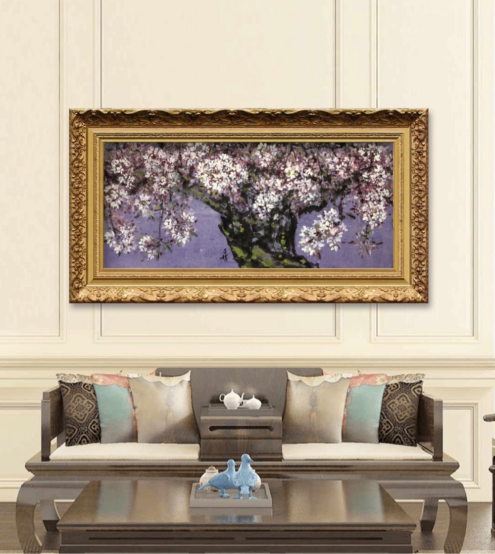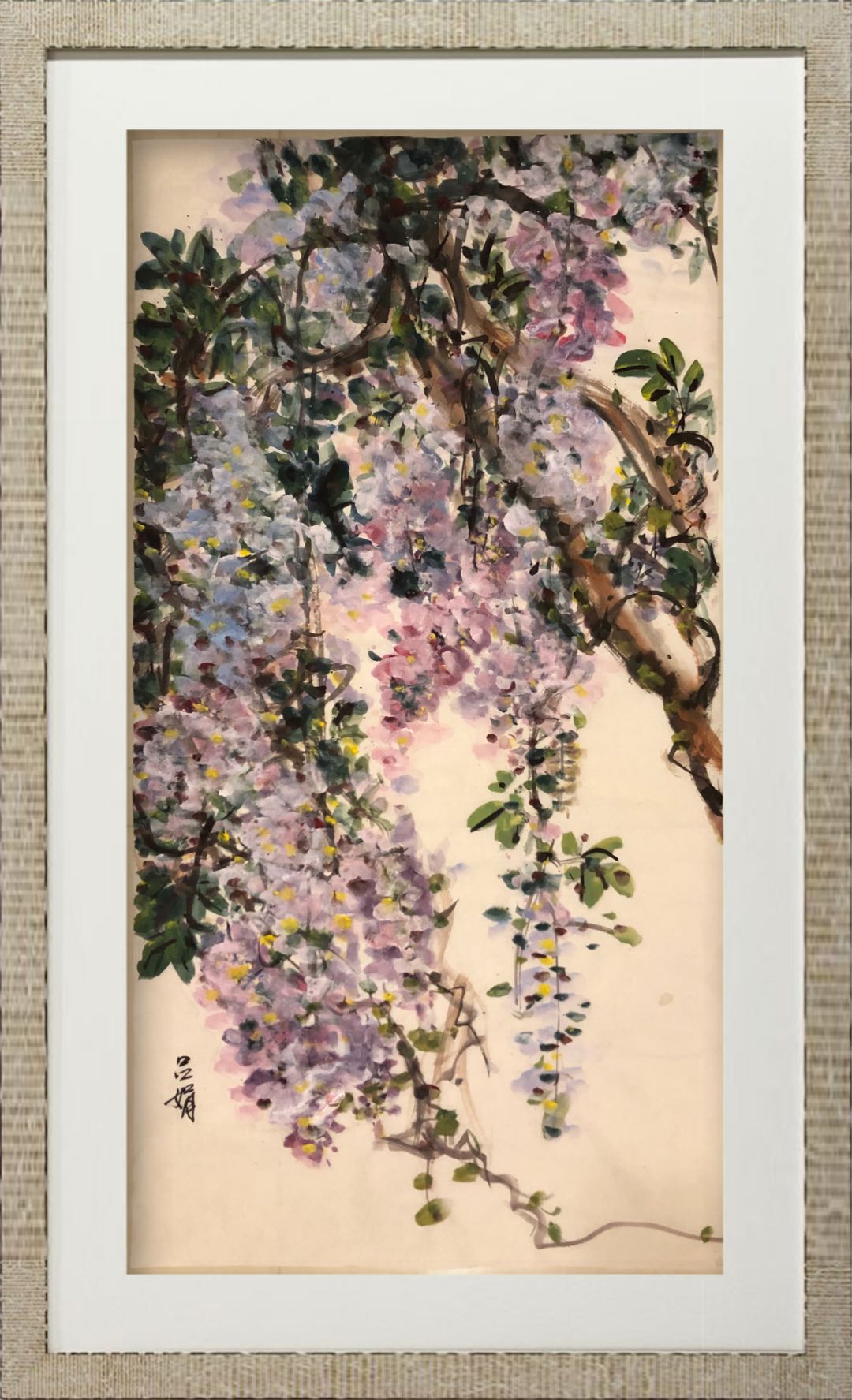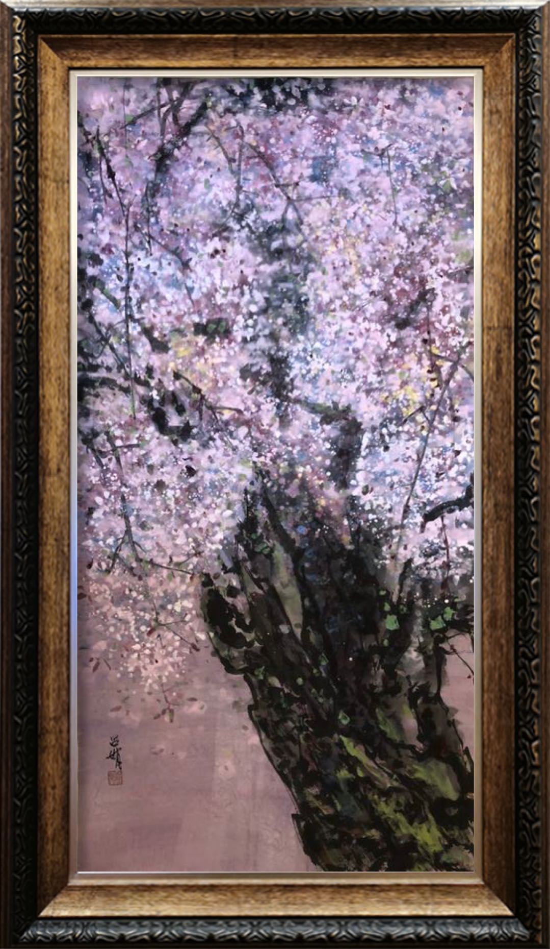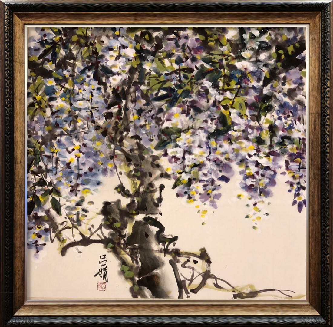 由此我们不难想象,吕娟的绘画是她内心的冲动,是她給觀者的一種視覺沖擊,通過樱花系列,葵花系列和紫藤系列,我们可以看到作者对于花卉的精神表现。一个画家在心情安静的时候,应该经常思考:为什么要画画?怎样画?画画的目的是什么?画布(画纸)就是画家行动的舞台,就是一种思想,感性和灵性具体体现。观看吕娟的个展,我们大概可以感受到作者的心理轨迹。