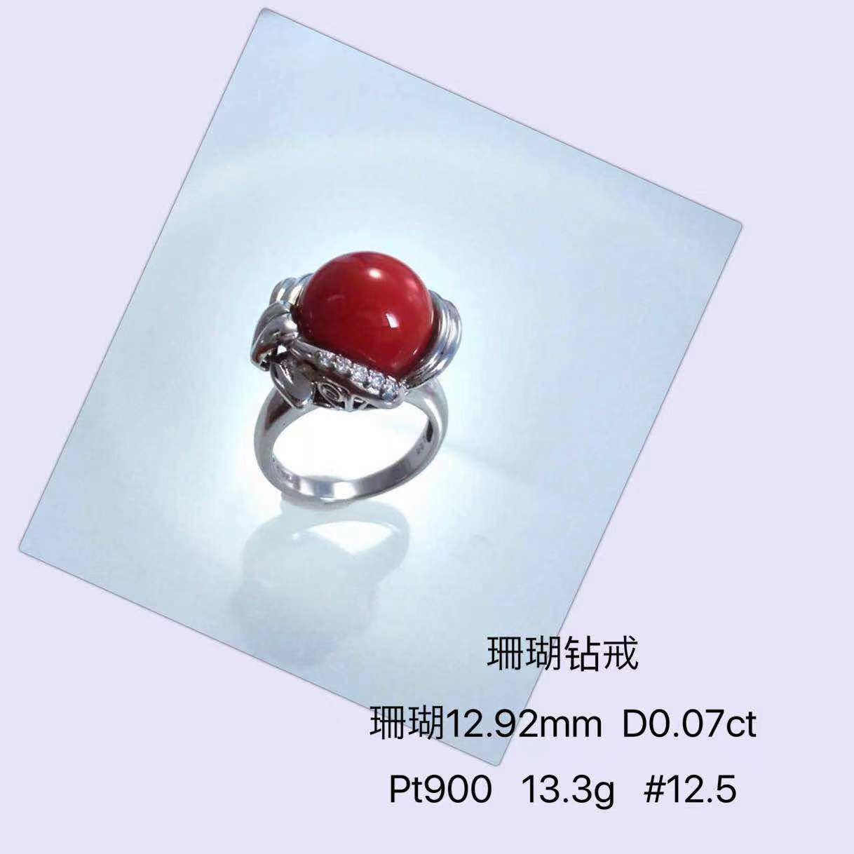 38,珊瑚钻戒 铂金900 手寸12.5