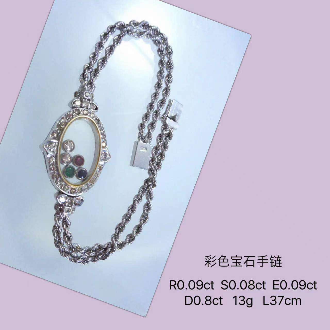 39,彩宝手链 红宝0.09ct 蓝宝0.08ct 祖母绿0.09ct 钻石0.8ct