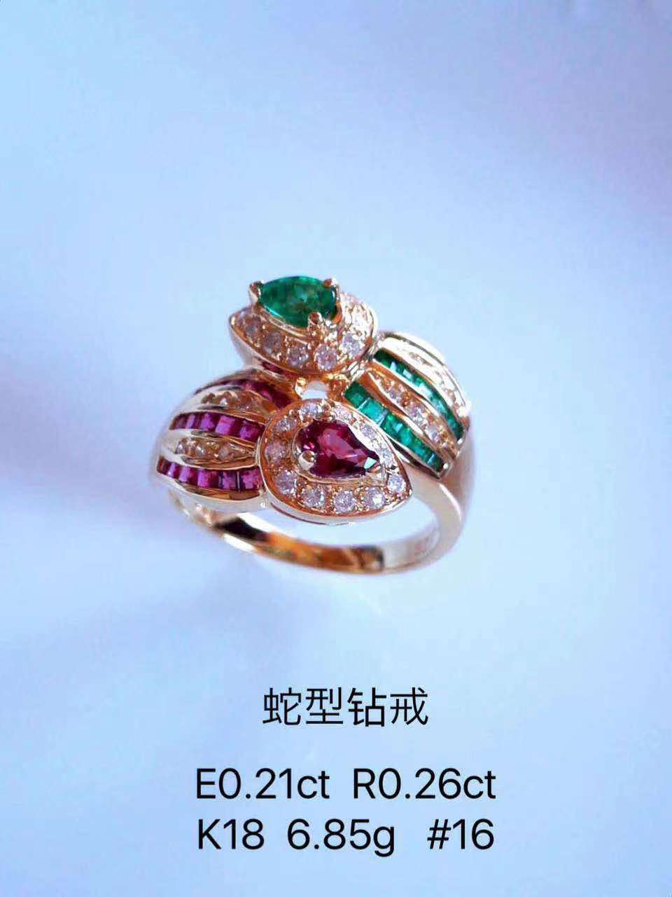 40,钻戒 祖母绿0.21ct 红宝0.26ct 手寸16