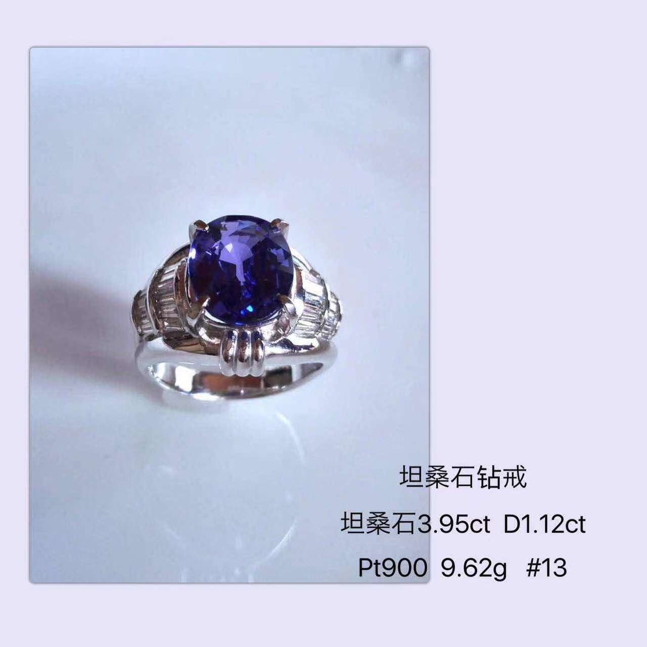 43,坦桑石钻戒 钻石1.12ct 铂金900 手寸13