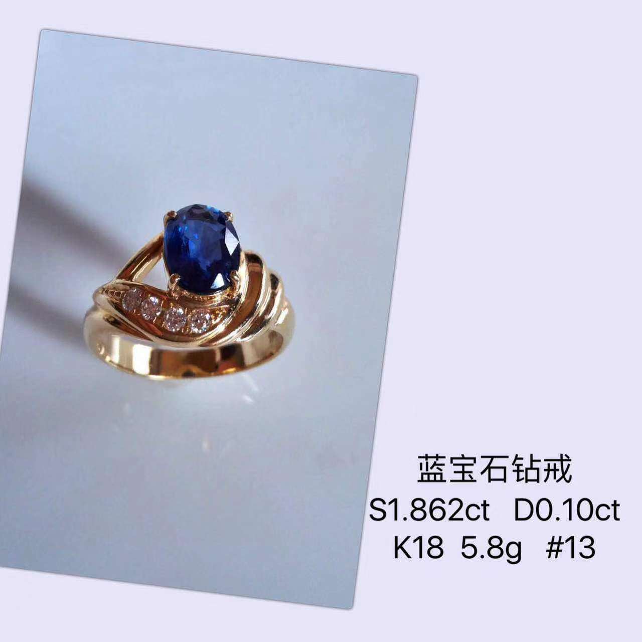 44,蓝宝钻戒 蓝宝1.862ct 钻石0.10ct 手寸13