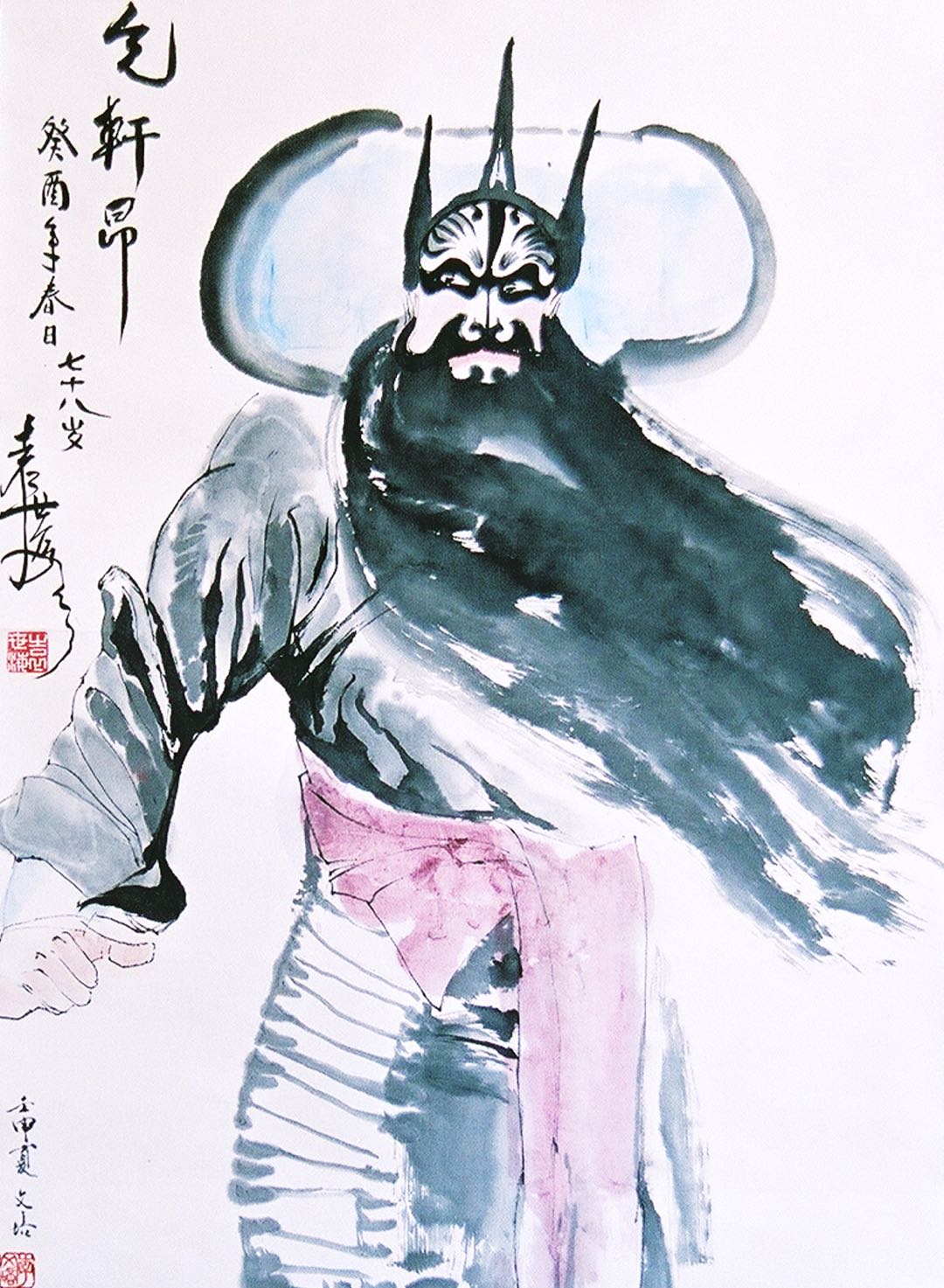 此剧为经典,梅兰芳、杨小楼、金少山演得荡气回肠。此画浓墨与淡墨强烈对比,留下难忘的印象。