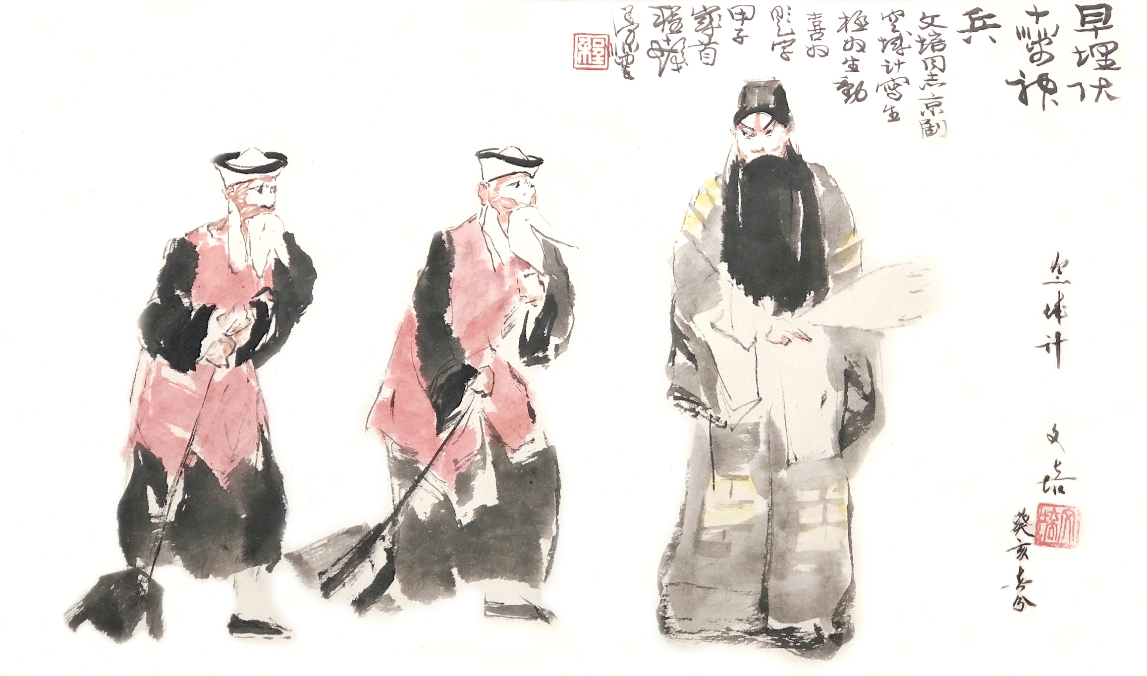说“前无古人,后无来者”可能有些夸张,但我的友人李文培先生在他五十多年的艺术实践中,义无反顾地创建了一座中国人物画的里程碑:戏曲人物。在他的丹青笔墨下,人物不仅仅映现了一种文化,一种历史;也不仅仅以虚表实,以简代繁,让人物的命运产生久远的哲理反思,他创造的每一个戏曲人物既有瞬间亮相的美,又赋予行云流水般的韵律,我们好像感受到人物活灵活现的灵魂,这是艺术创造的极高境界,也是他的作品之所以让人想象无限的魅力。