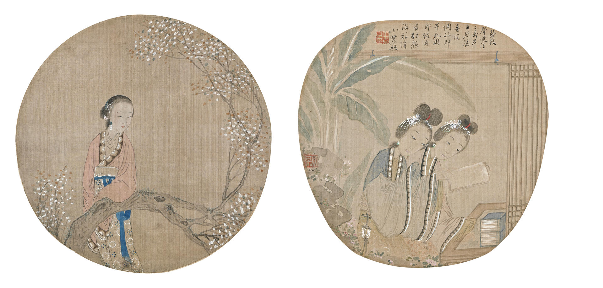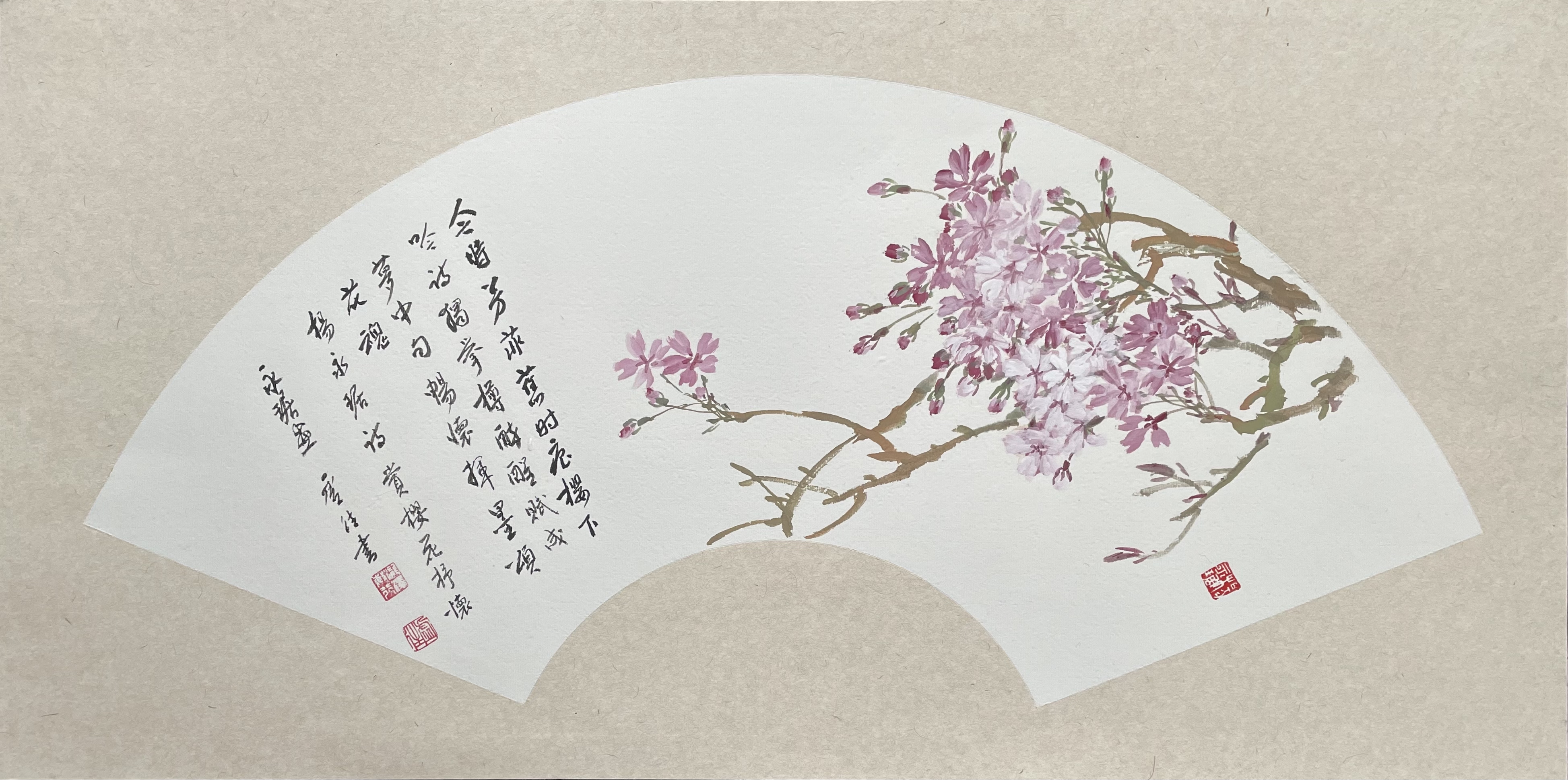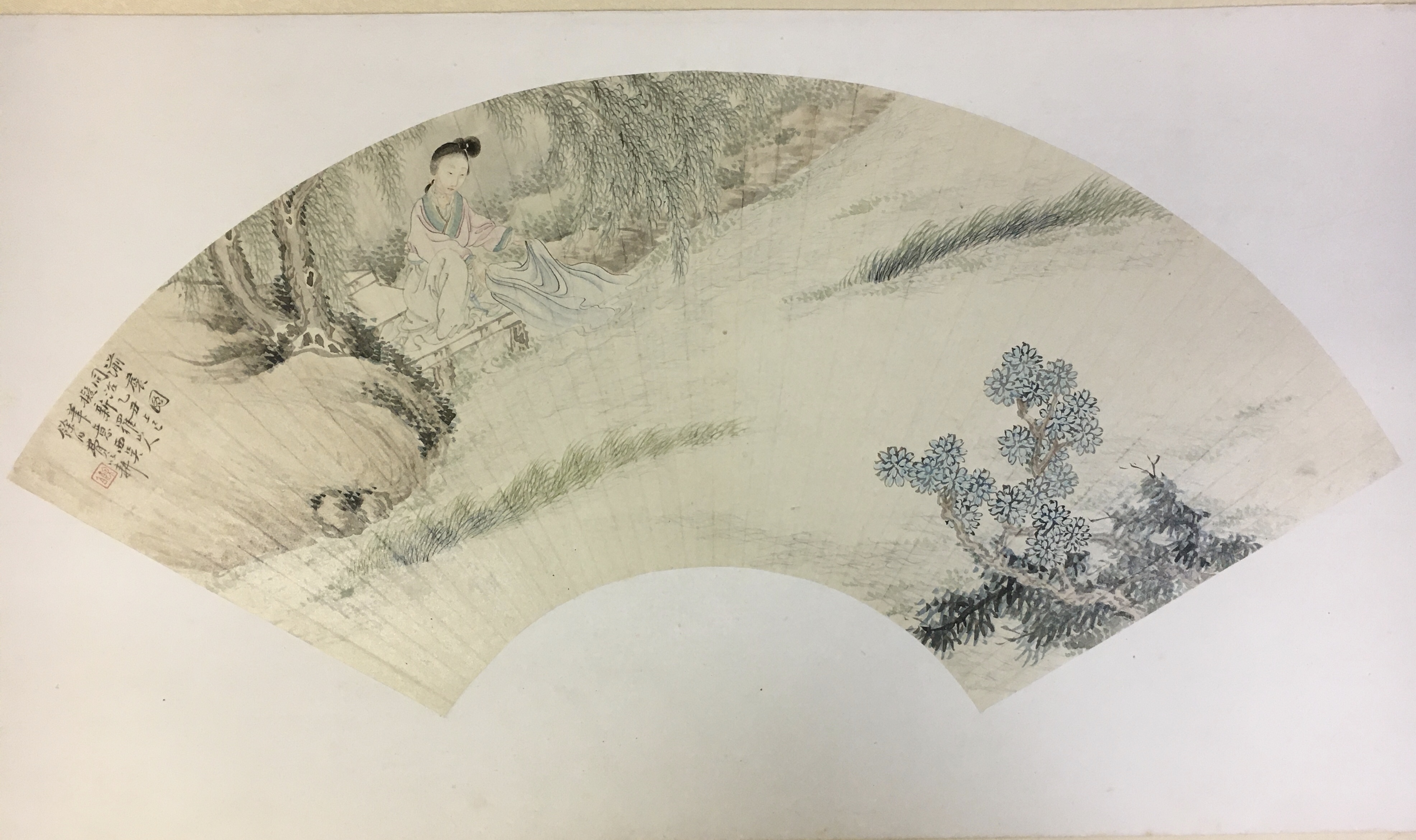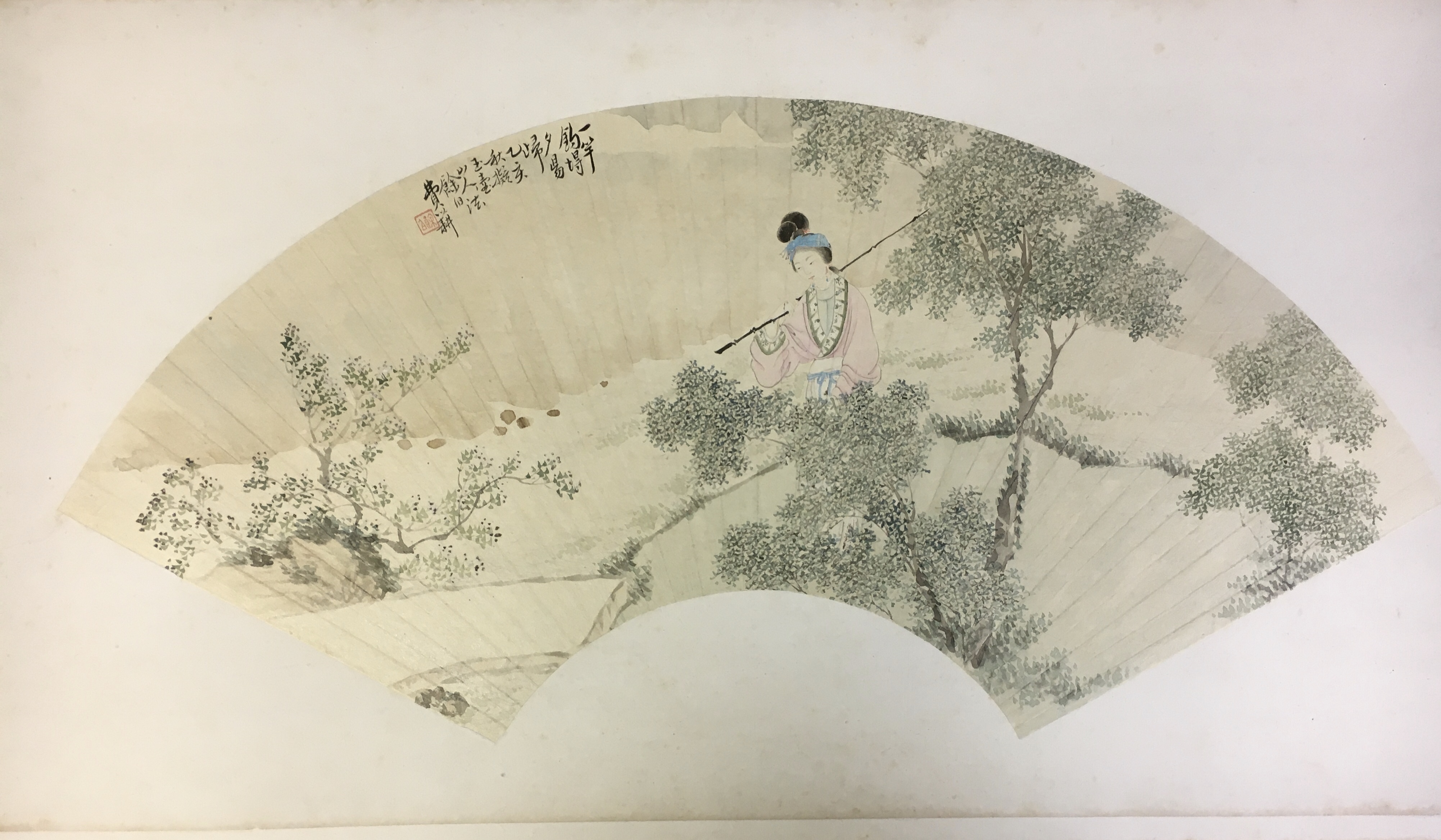 字・子和、江蘇省呉江出身。夏之鼎を師として、花卉等を学び、鮮麗かつ色彩な独自の画風を生み出した。名所垂虹亭畔紅梨花館に住い、各種の花卉の表現が堪能であることから、花鳥の扇面絵は特に著名である。