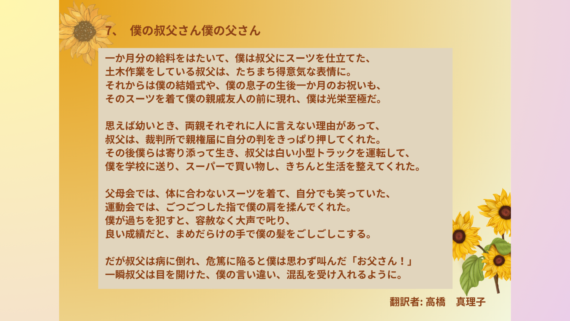 可是叔叔病了,在他病危之际我失声地喊道:“爸爸”!“