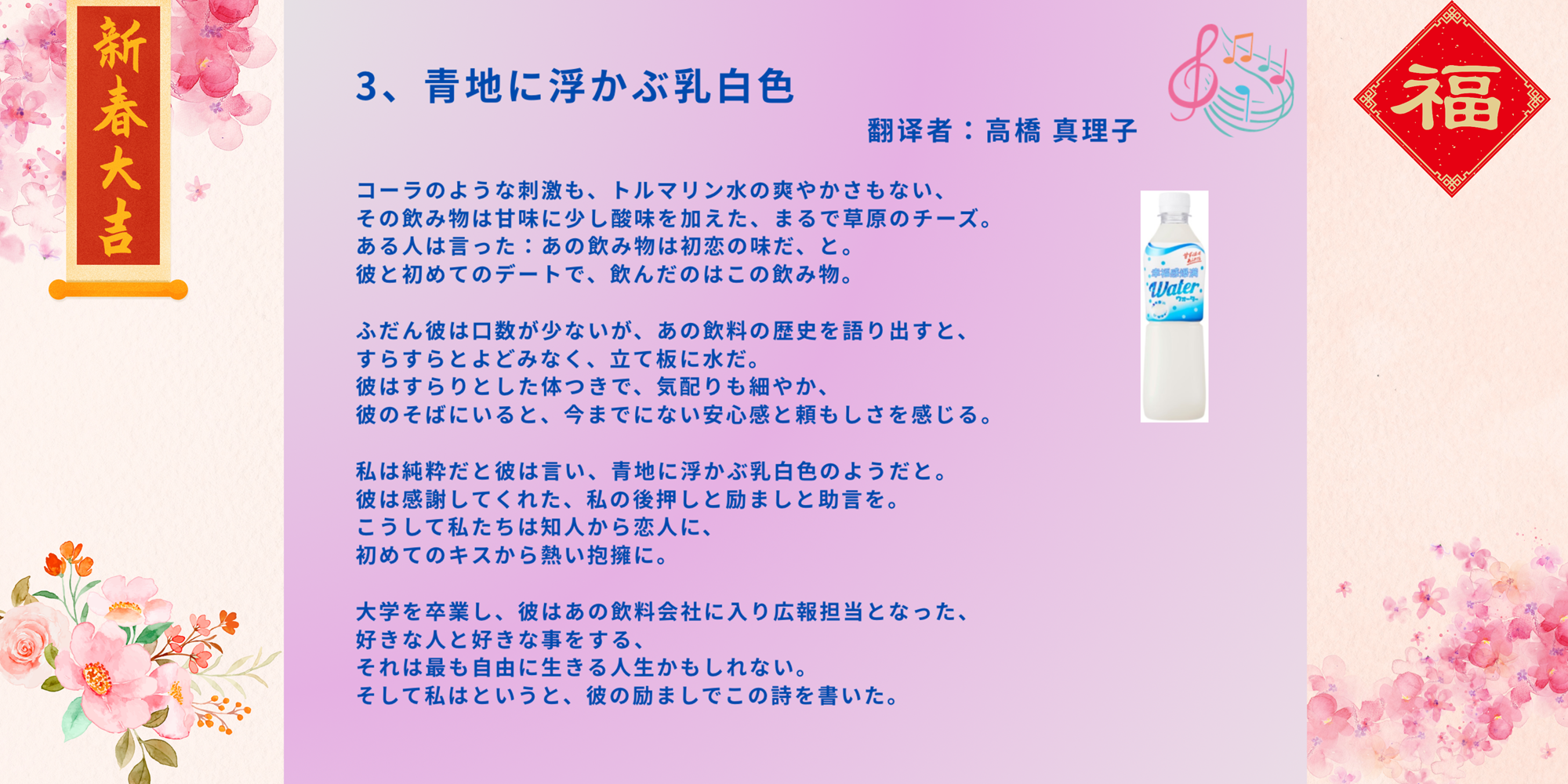 那款饮料的甜带点儿酸,如同草原上的奶酪。