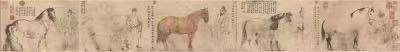 消失已近百年的李公麟《五马图》重现人间:《五马图》这类标准的“吴装”淡彩,至元一变为黄公望以赭石加花青的浅绛设色,意味着绵延六百余年的文人山水画正统派的基调,早在赵孟頫之前的李公麟,就已初定