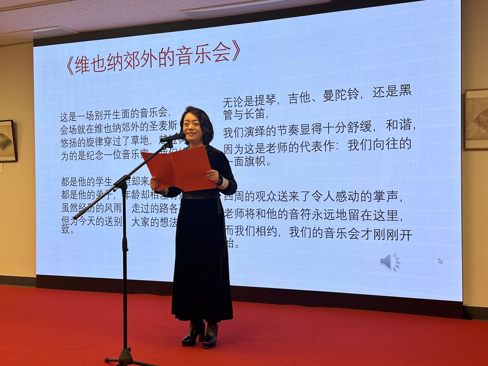 出场序5号安格朗诵的《维也纳郊外的音乐会》,全诗并没有说出一位音乐家的名字,也没有说一曲旋律的名字,甚至没有说音乐会具体场地的名字,提供给听众无限的想象空间和审美情趣!并描绘了一个一个巨大的画面!我觉得这就是诗的最高境界,让台下听众情不自禁插上想象的翅膀,驰骋在诗人描绘的巨大画面上,陶醉在自己喜欢的音乐家,喜欢的名曲之中。