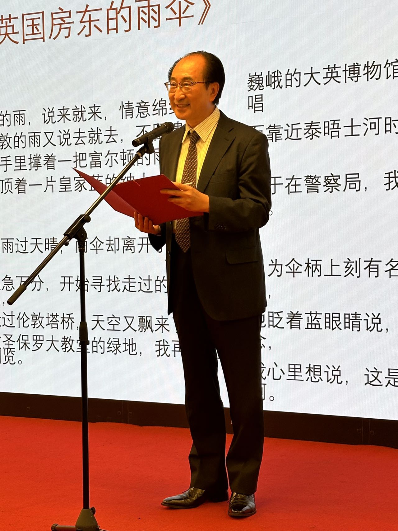 倾听出场序6号宋靖钢朗读《英国房东的雨伞》,当场我一瞬间迷惑:到底是这首诗找到宋靖钢?还是宋靖钢找到这首诗。因为在日本很少遇到具有如此英伦绅士风度的人、而且宋靖钢诵读时自然而然流露出的身体语言(body language),仿佛他就是诗中的“我”。